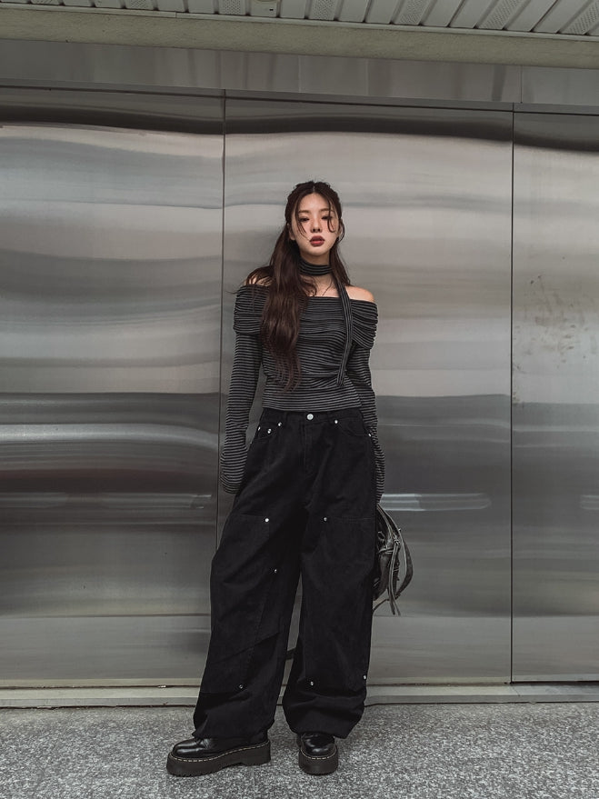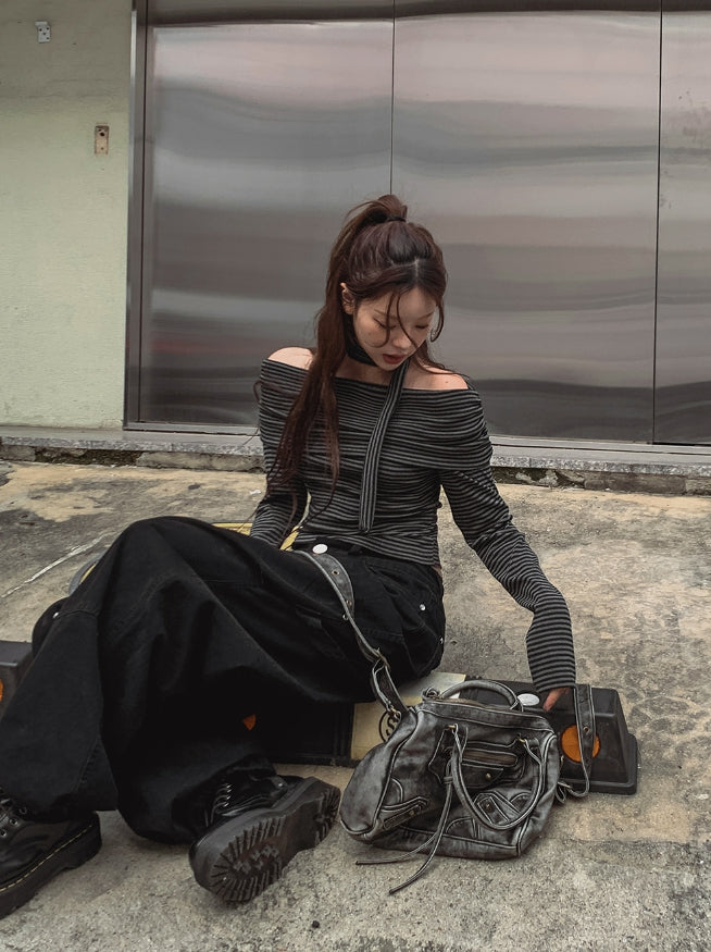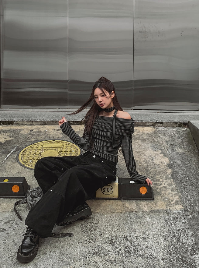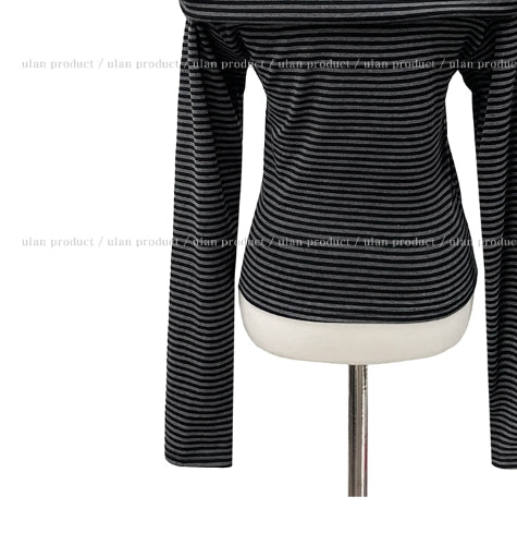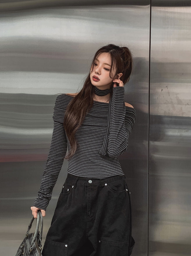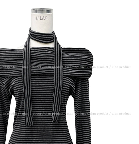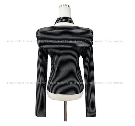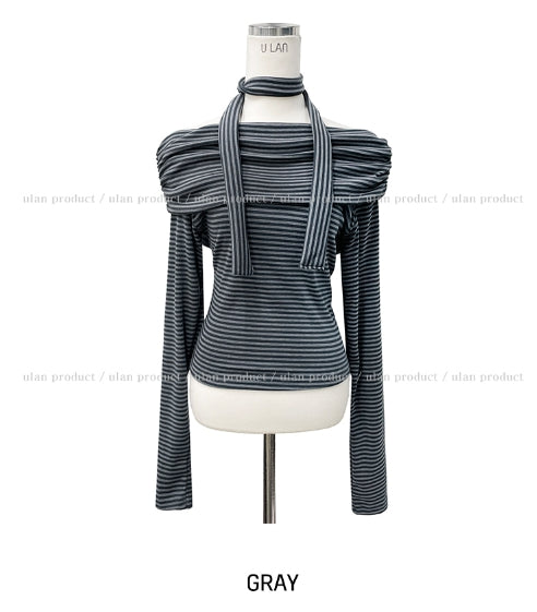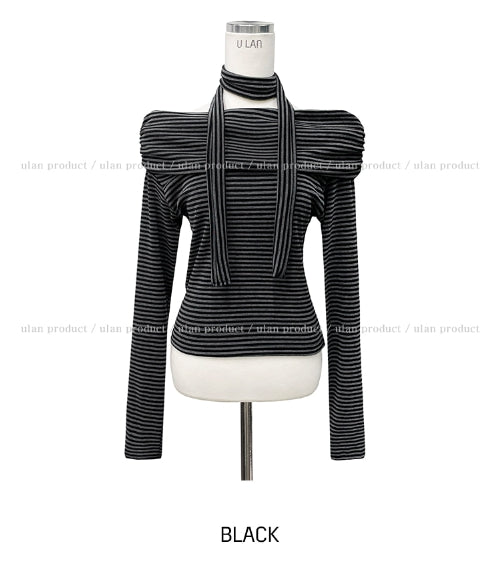 [マフラーセット]レイオフショルダーボーダー長袖Tシャツ