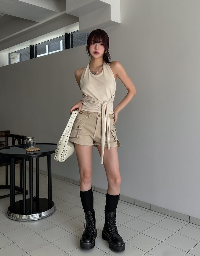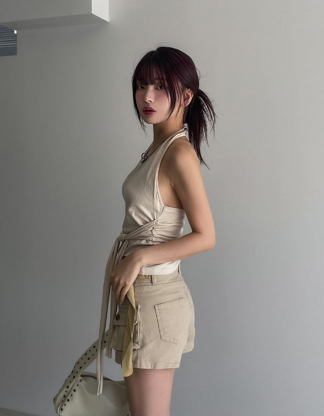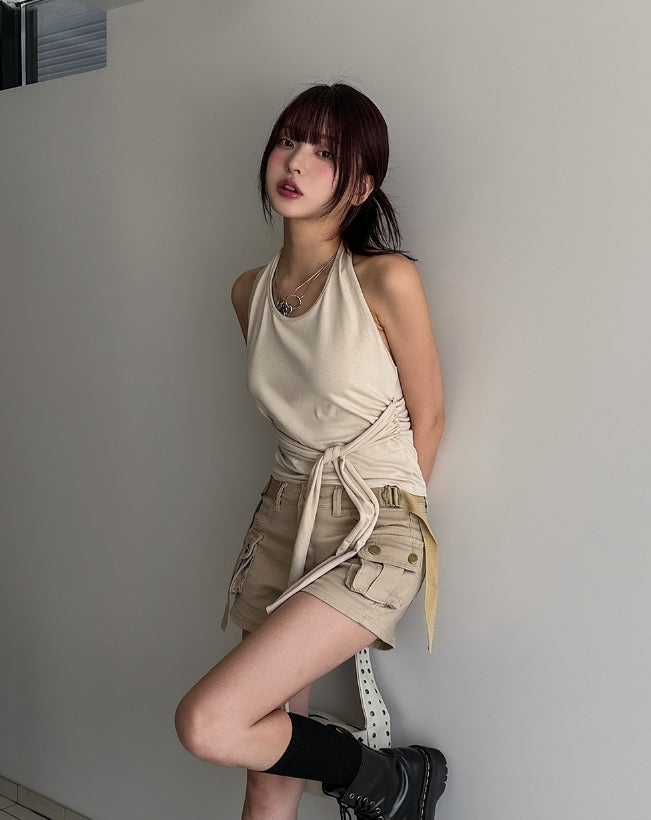 マルイットサイドシャーリングストラップホルタータンクトップ