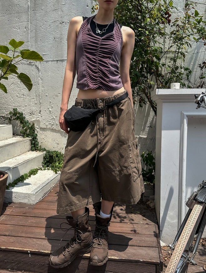 -ONE SIZE (ウエスト(ゴム)64 ヒップ122 股上35 股下30 もも周り76 裾周り134 総丈65)