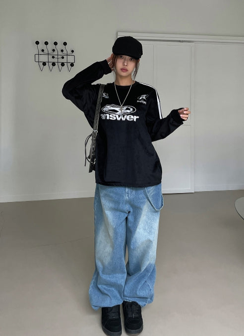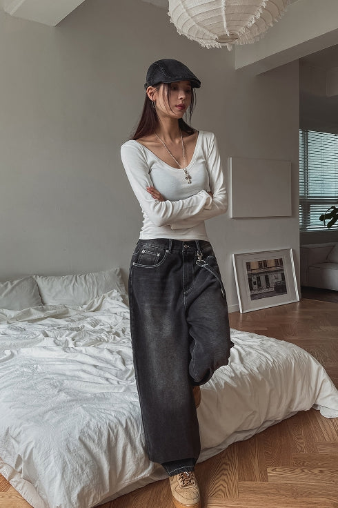 Nad washing chain wide denim pants