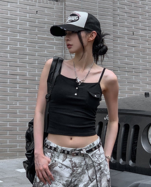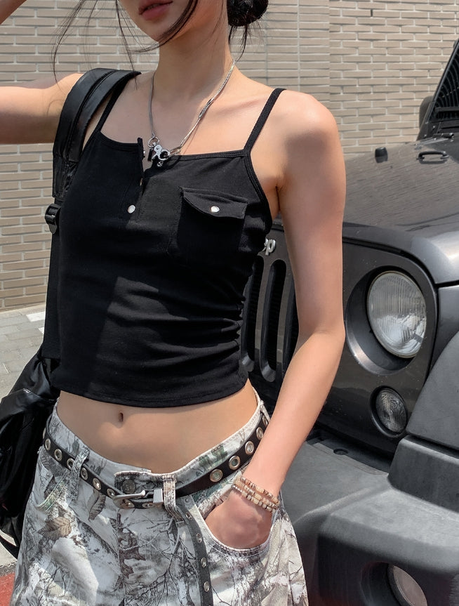 ネヴワンポケットボタンクロップキャミソール(カップ付き)