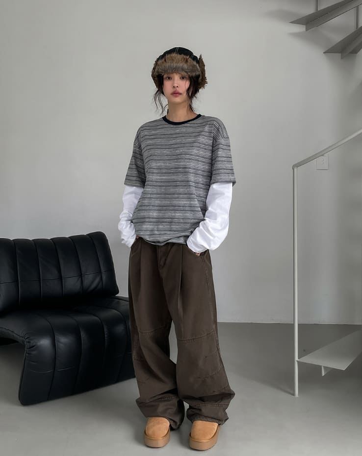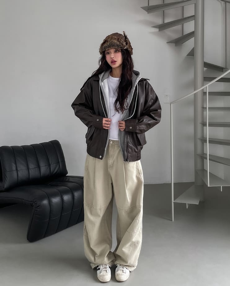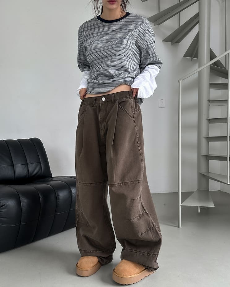 -168cm, top 55size , bottom 27(M) / Beige, Brown Mサイズ着用