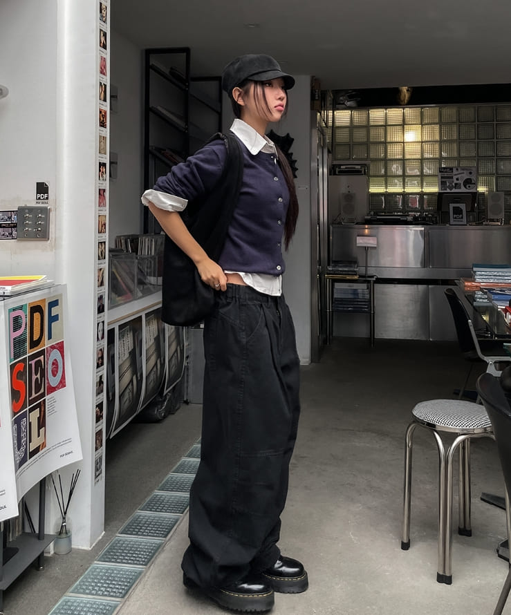 -166cm, top 44size , bottom 26(S) / Black Mサイズ着用