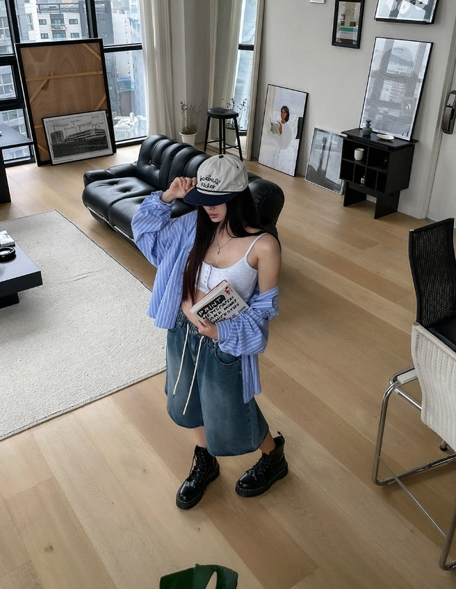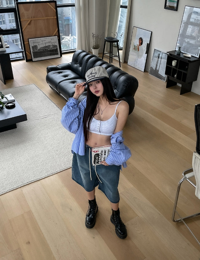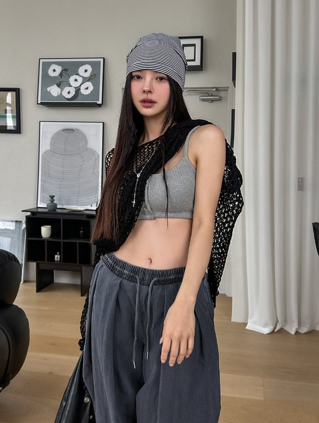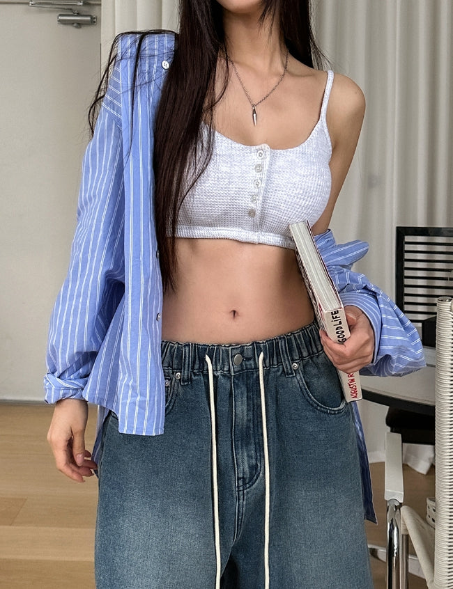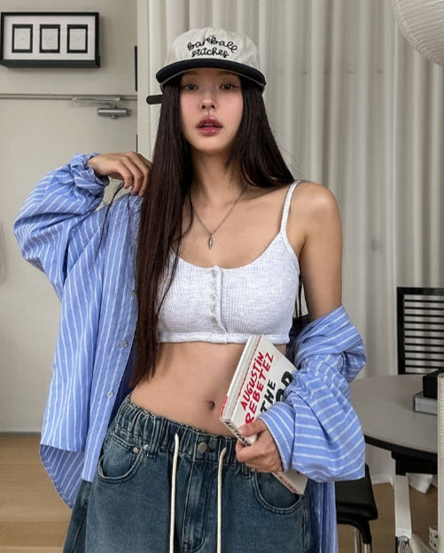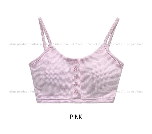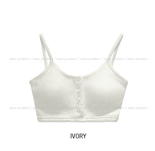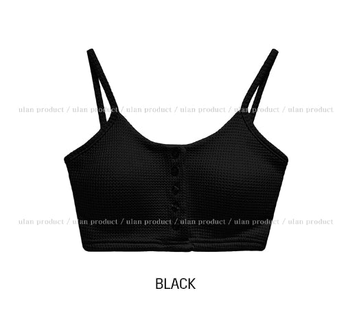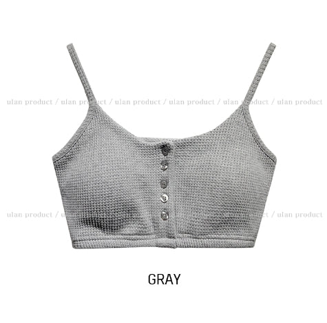 Nor Button Waffle Crop Top (+ With Cup)