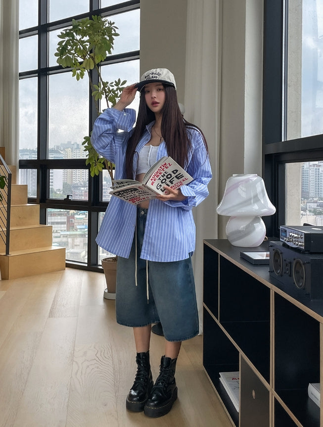 -168cm, top 55size , bottom 27(M) / Gray, White Melange