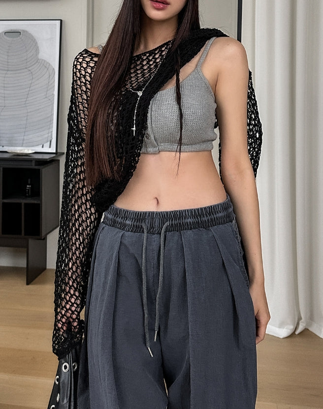 ノアボタンワッフルクロップトップ(カップ付き)