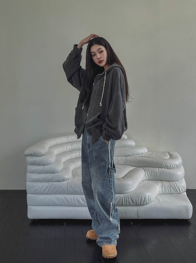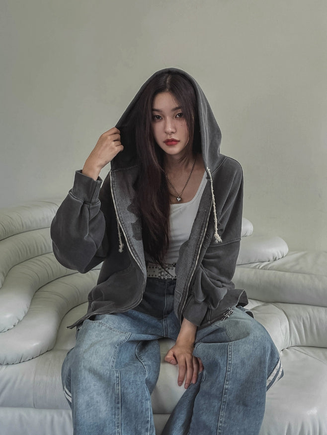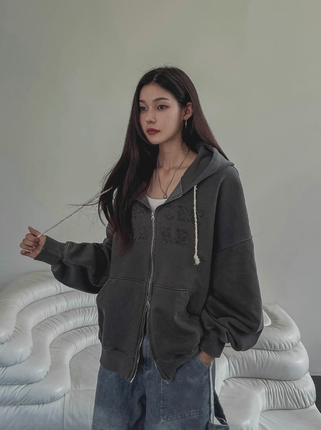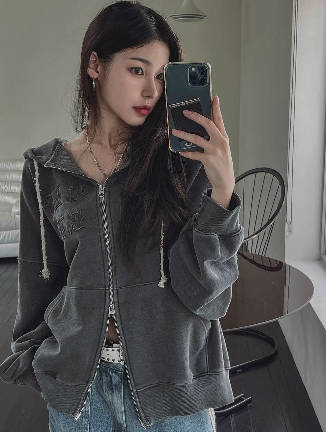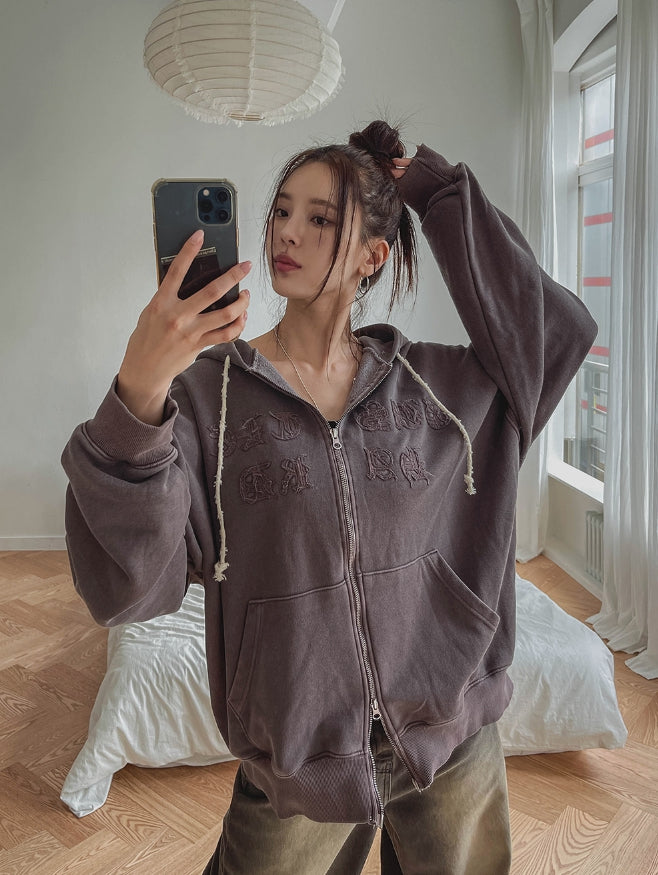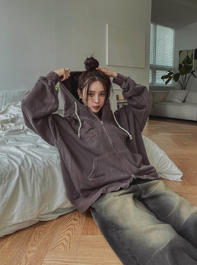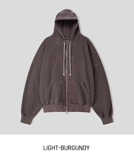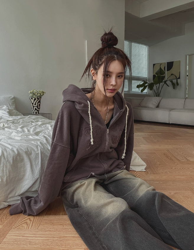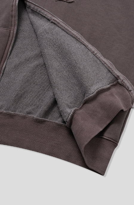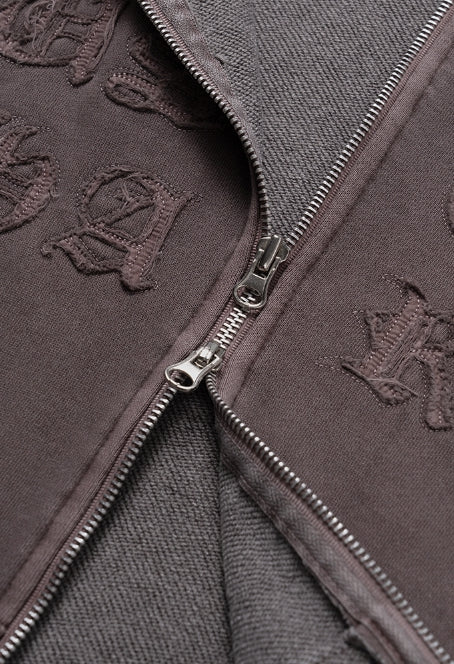 Rusty Pigment Embroidery Two-Way Hooded Zip-Up