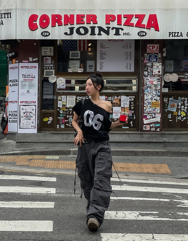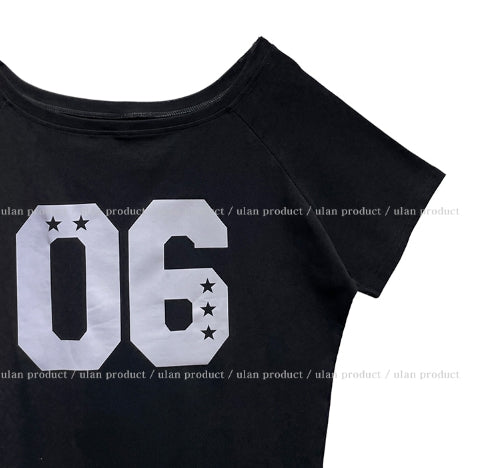 ナンバー6オフショルダーラグラン半袖Tシャツ
