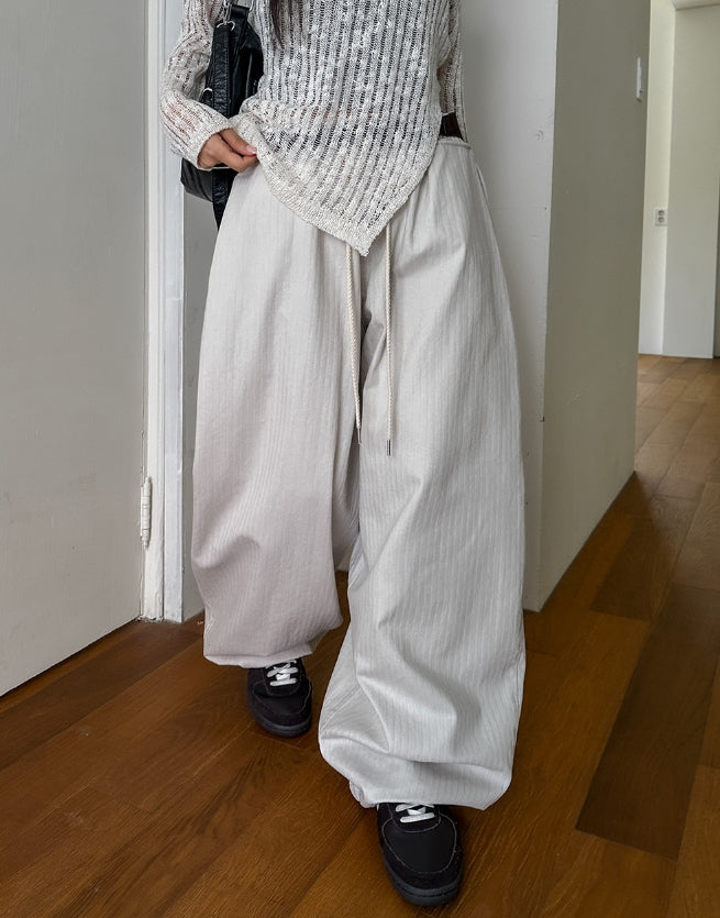 Oat herringbone side pintuck balloon pants