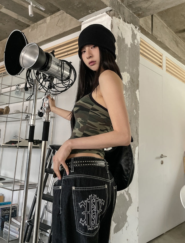 オールドヒップポケット刺繍デニムパンツ