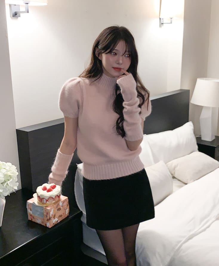 Ond Angora Half Turtleneck Knit Warmer Set