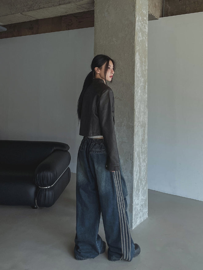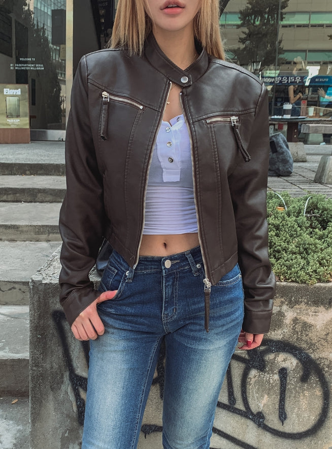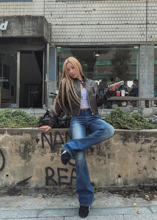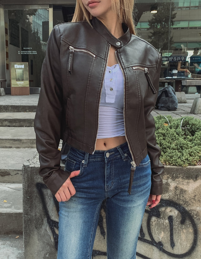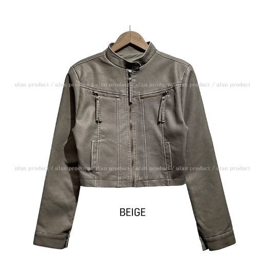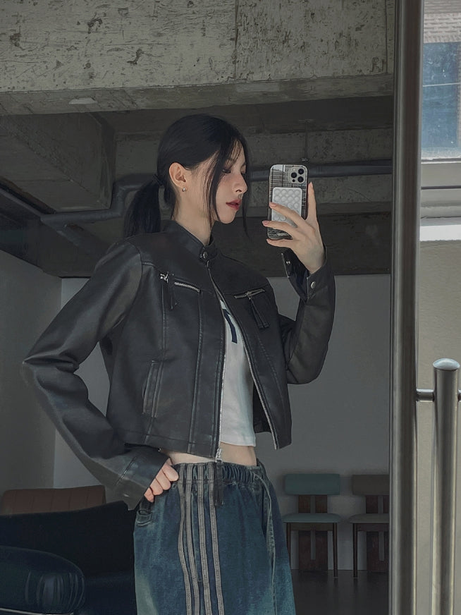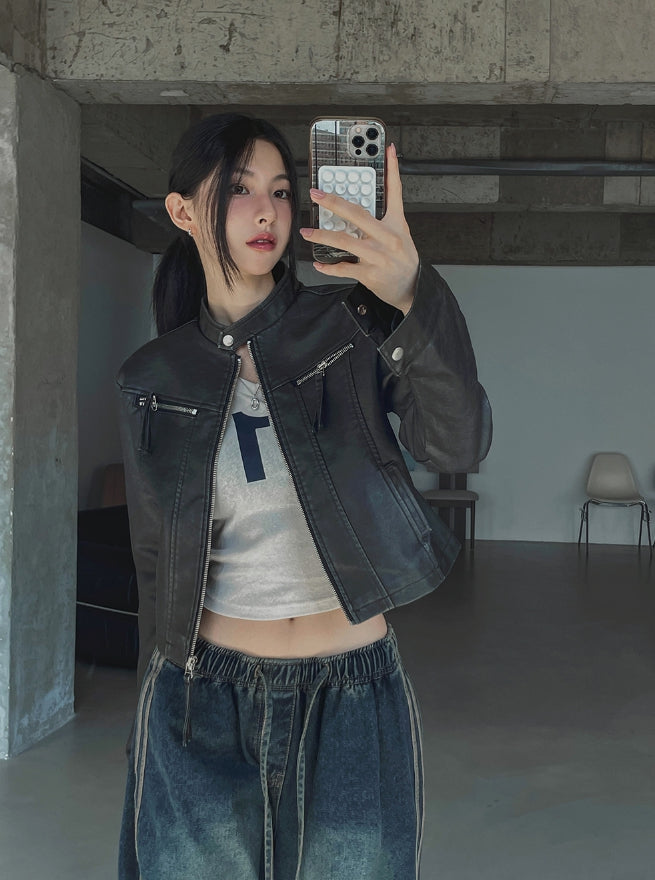 Oul vintage washing biker leather jacket
