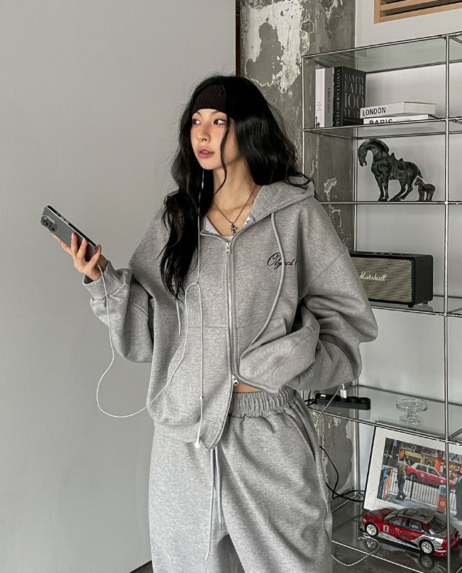 Ove Lettering Semi-Crop Hood Zip-Up