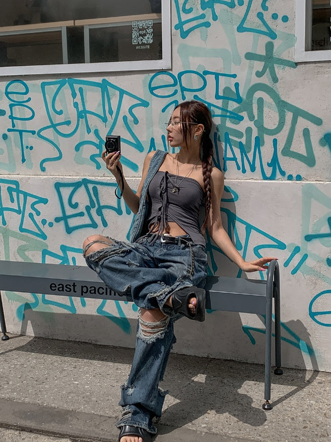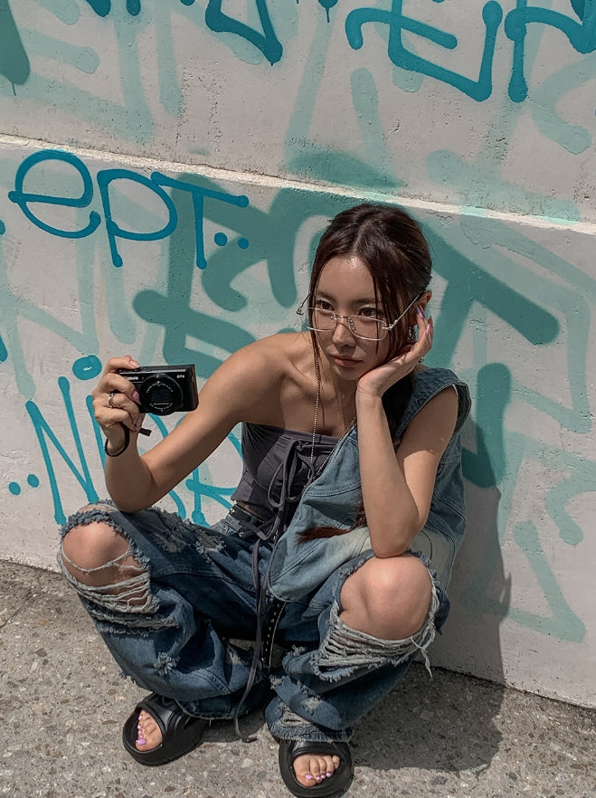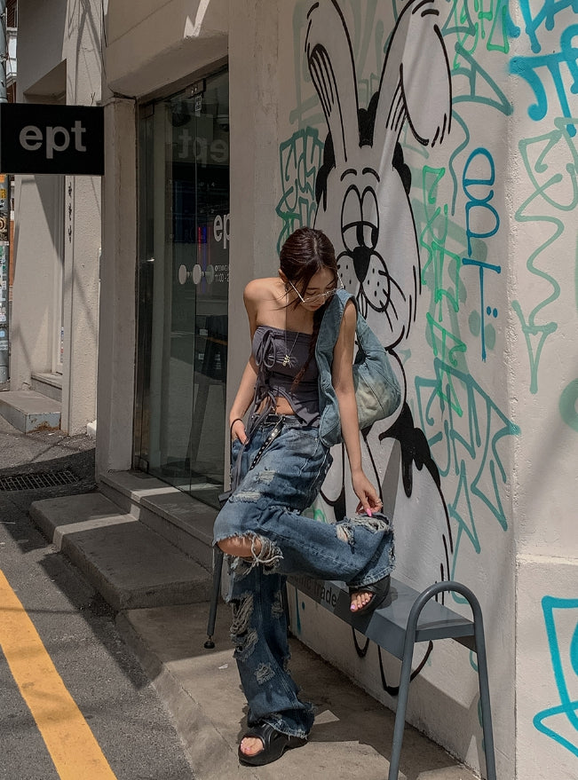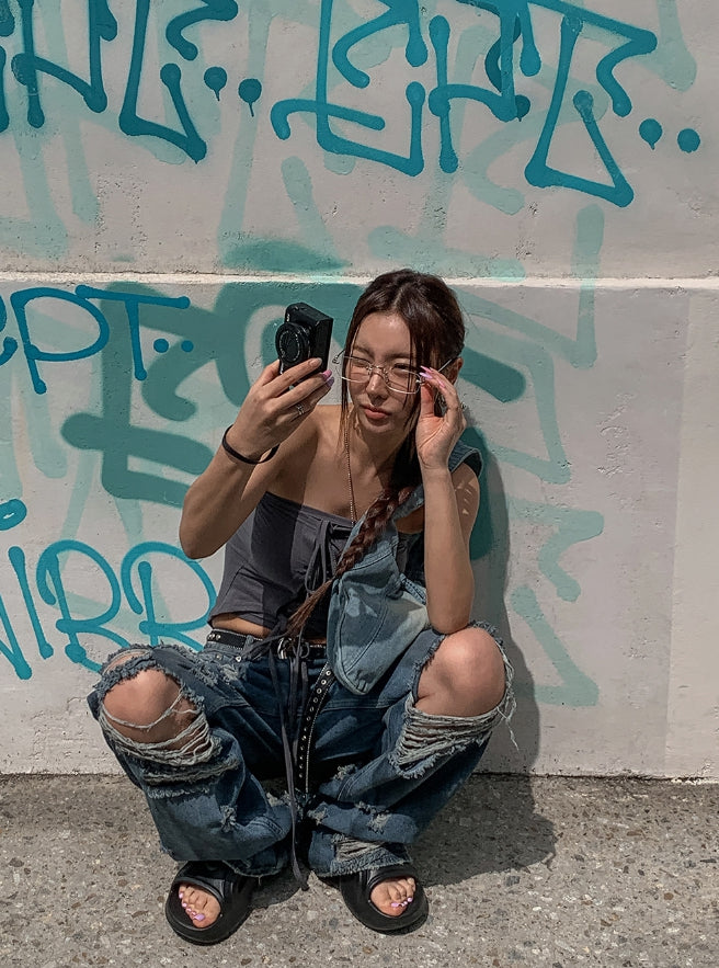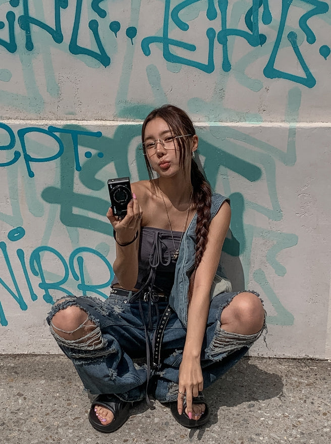 -163cm, top 44size , bottom 26(S) / Medium-denim color