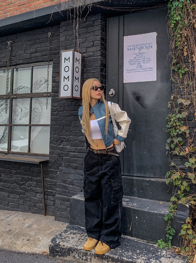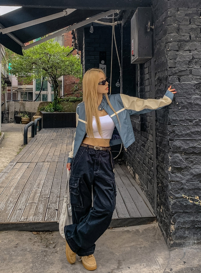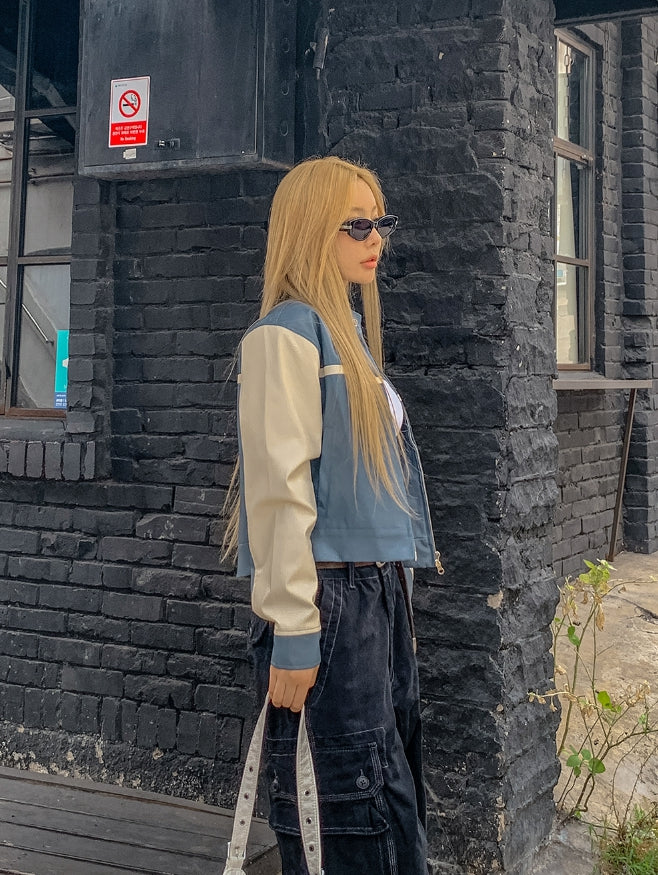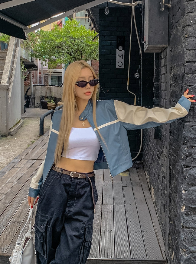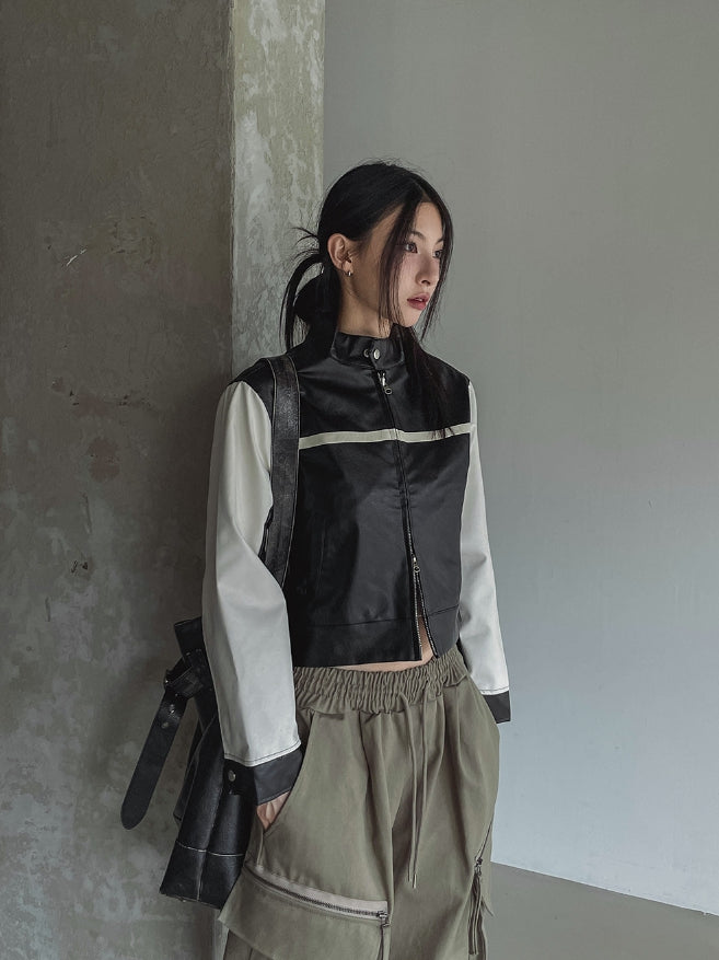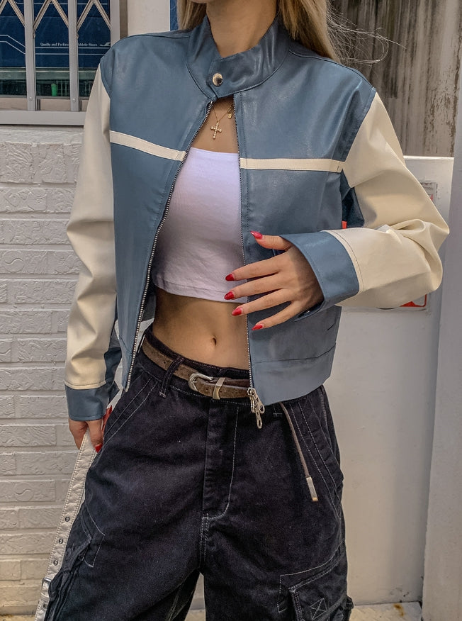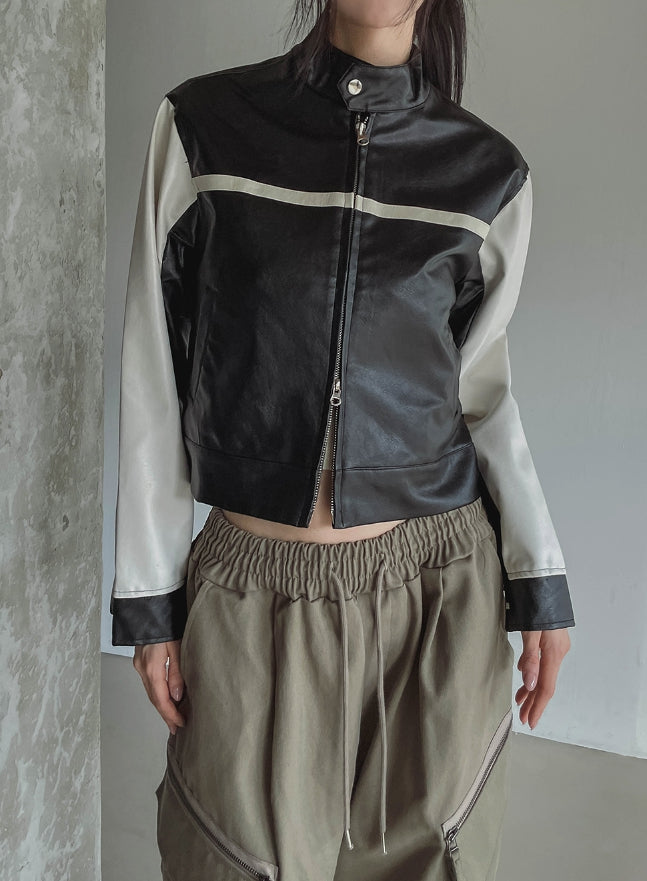 Peer One Track Crop Leather Jacket