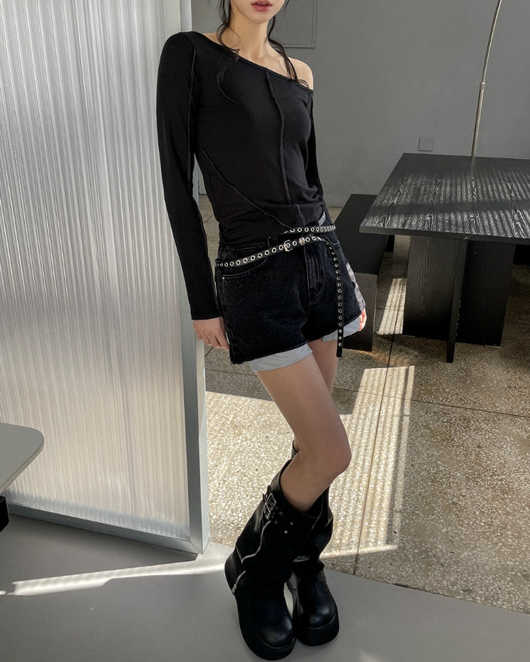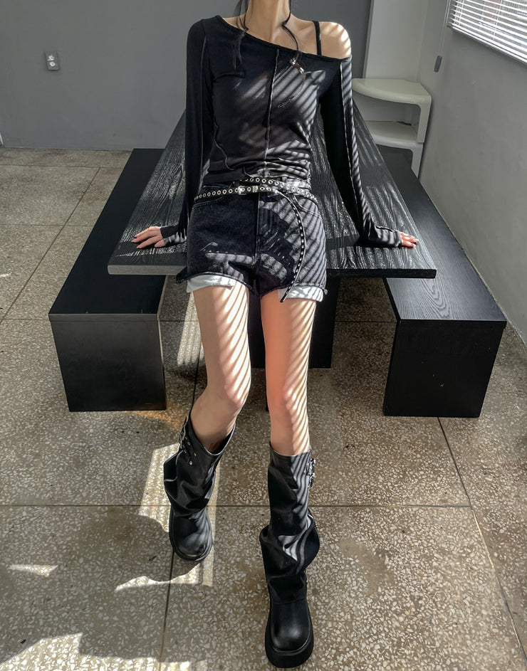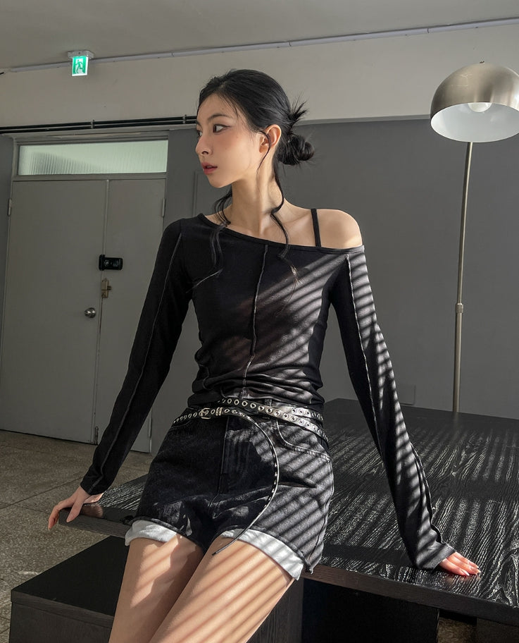 -S (ウエスト(後ろゴム)48 ヒップ90 股上29 股下4 もも周り54 裾周り- 総丈33)