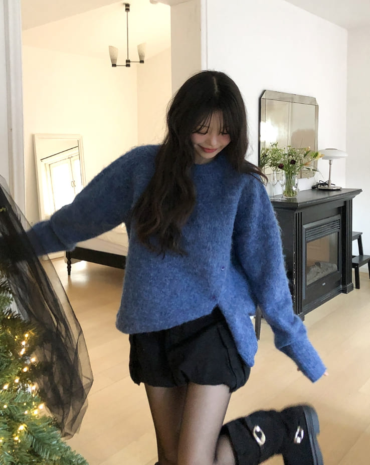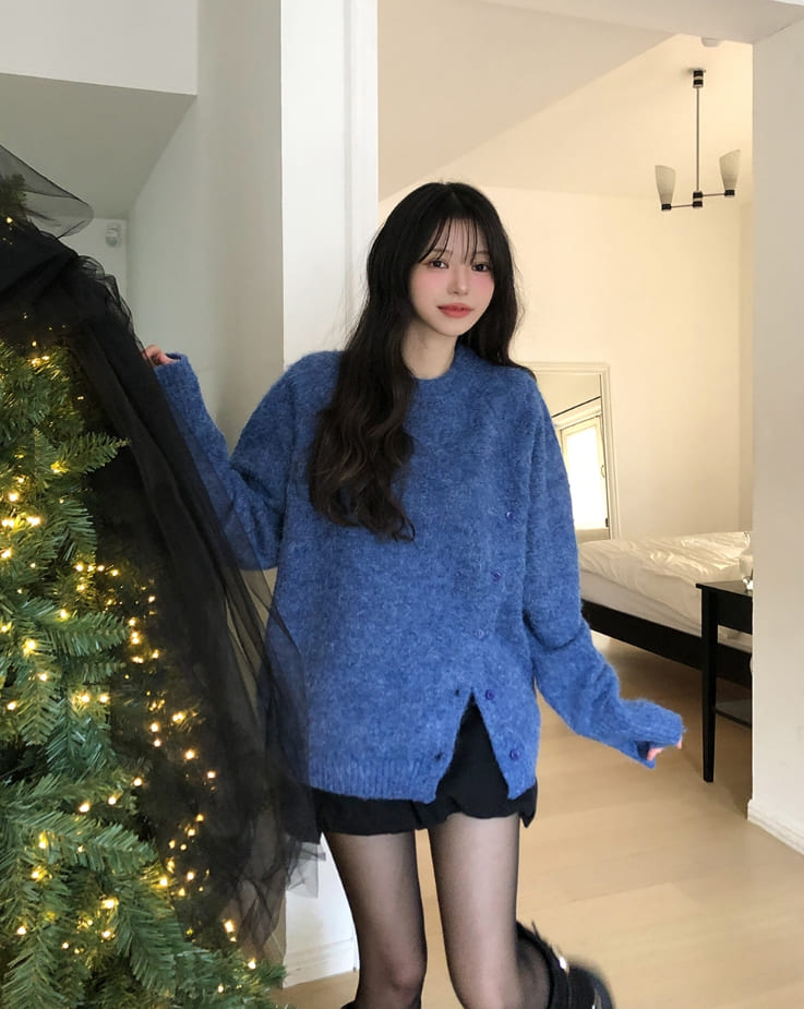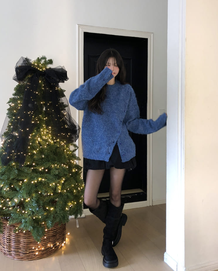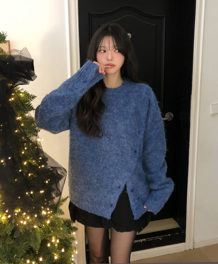 Polup wool slit button knit