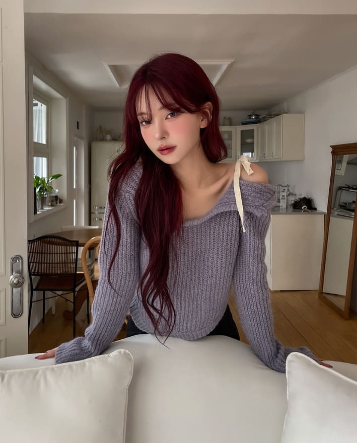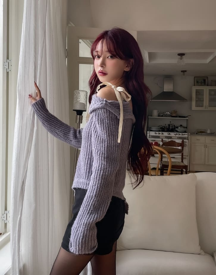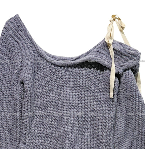 Posh Ribbon Strap Unbalanced Shoulder Knit