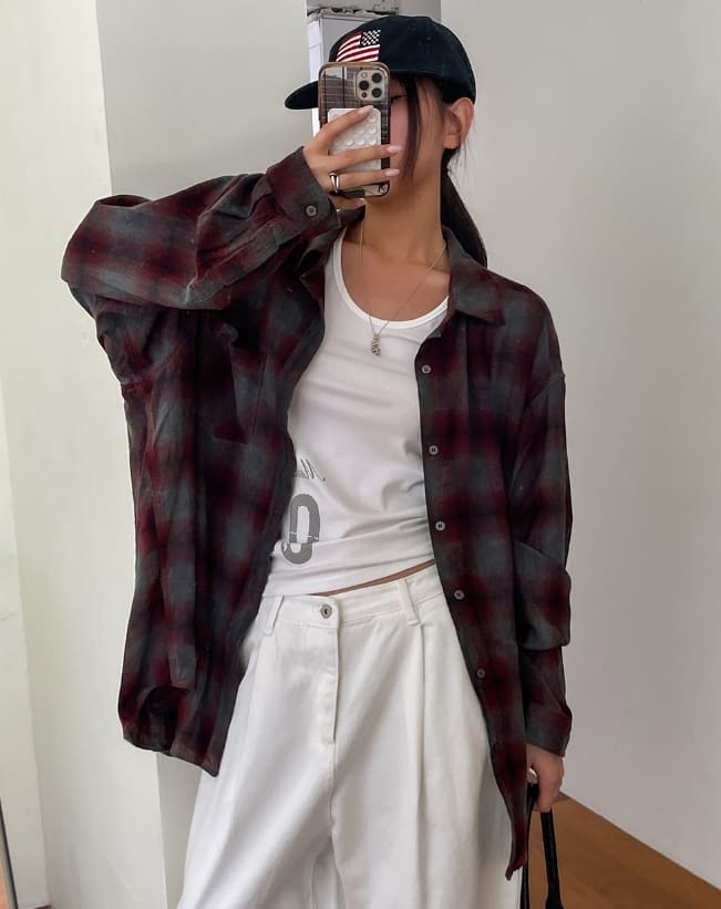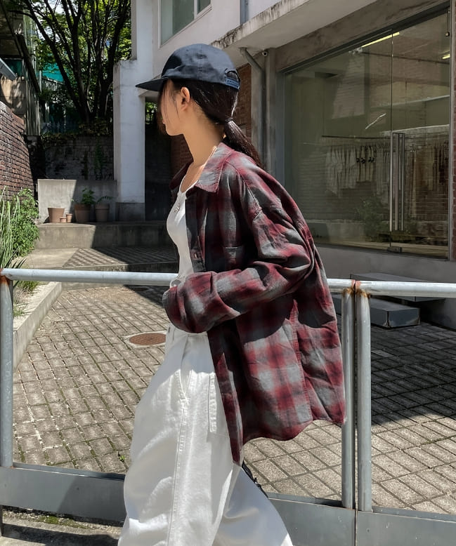 Posi smooth overfit checked shirt