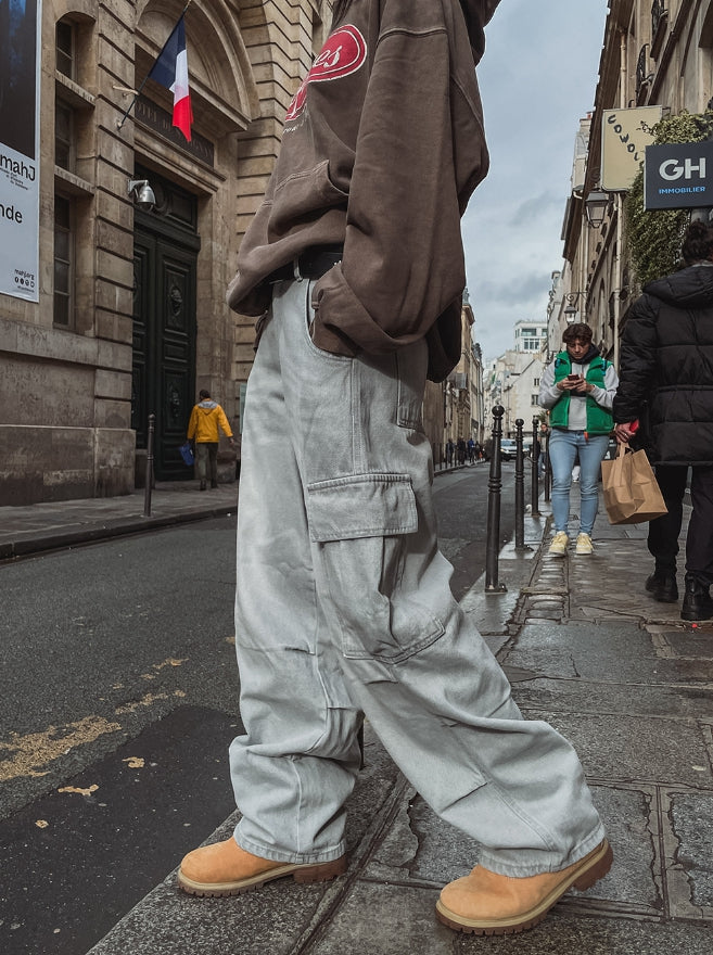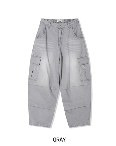 Puffer balloon half-banding denim pants