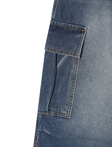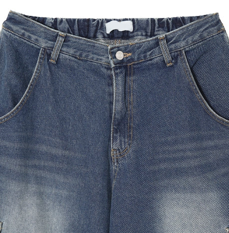 パフバルーンハーフバンディングデニムパンツ