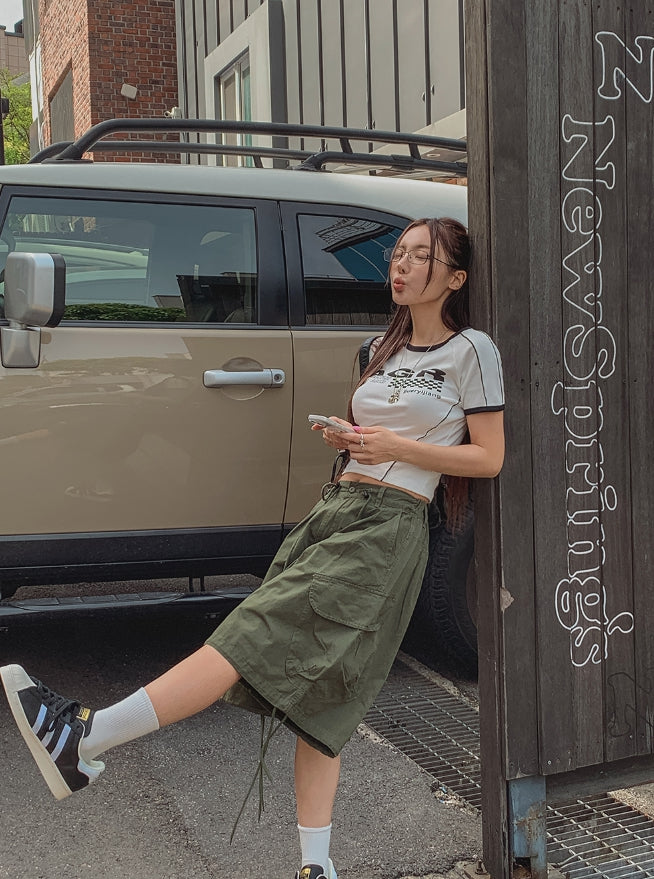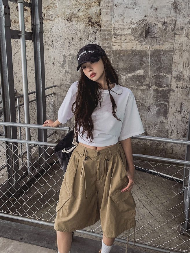 Pumpkin Pintuck Balloon Diagonal Cargo Pants