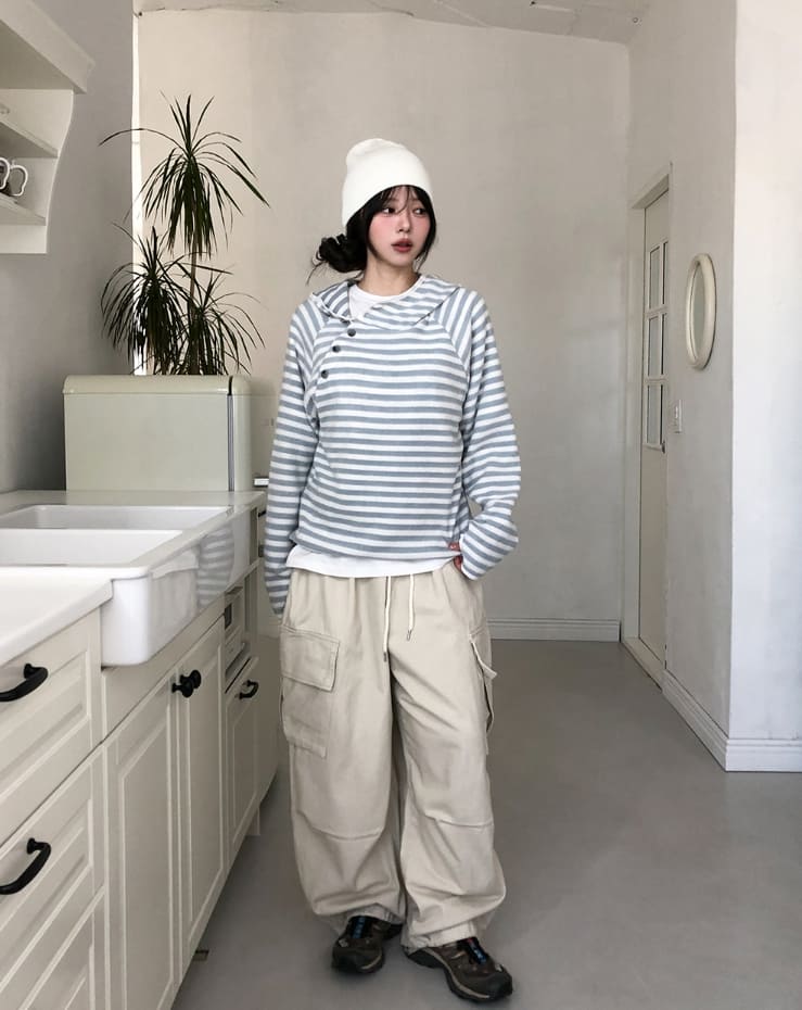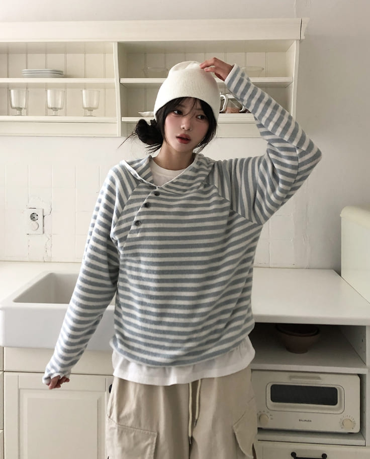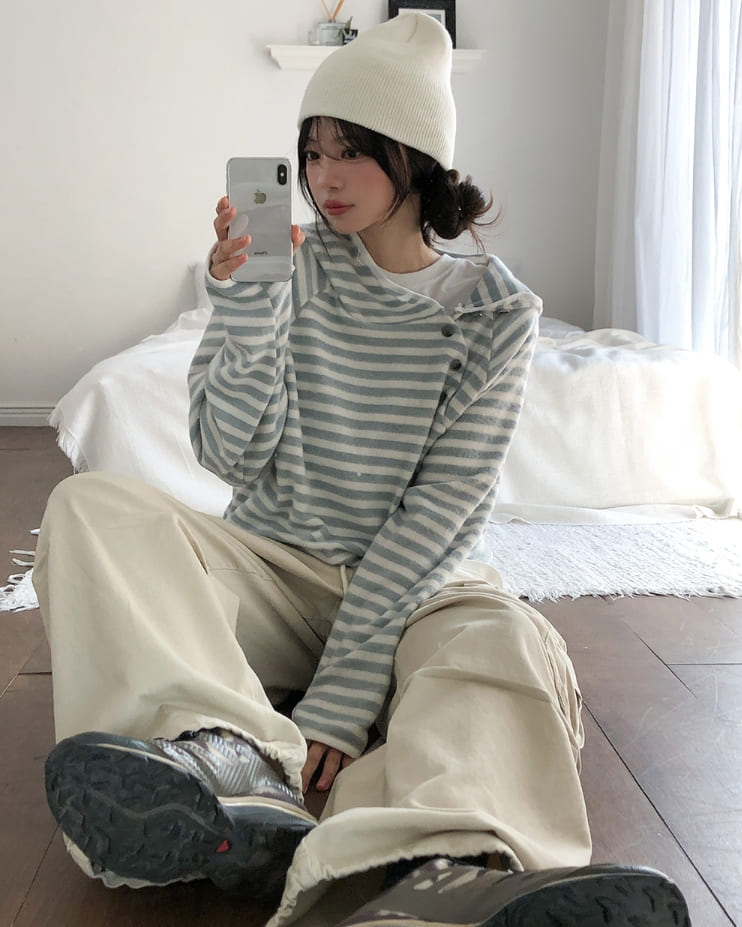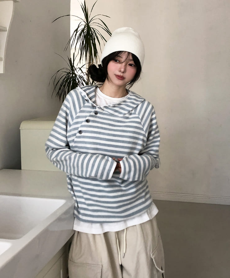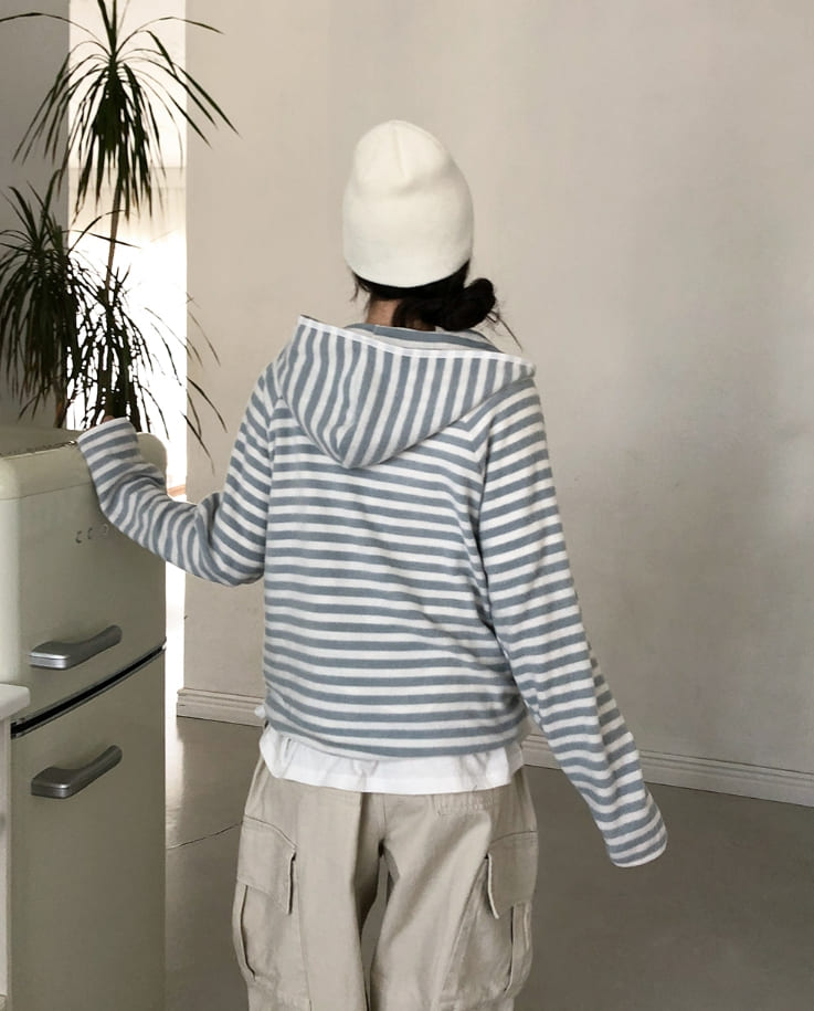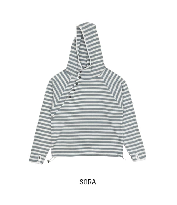 プルーニングボーダーダイアゴナルボタンウォーマーフーディ
