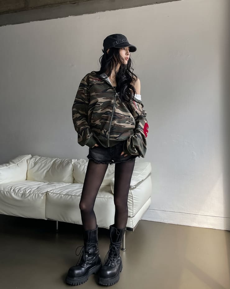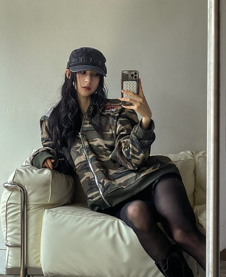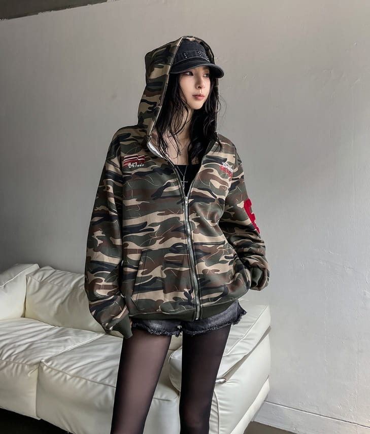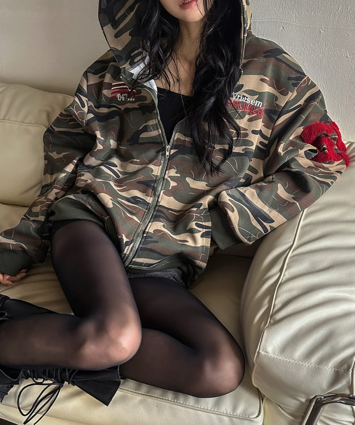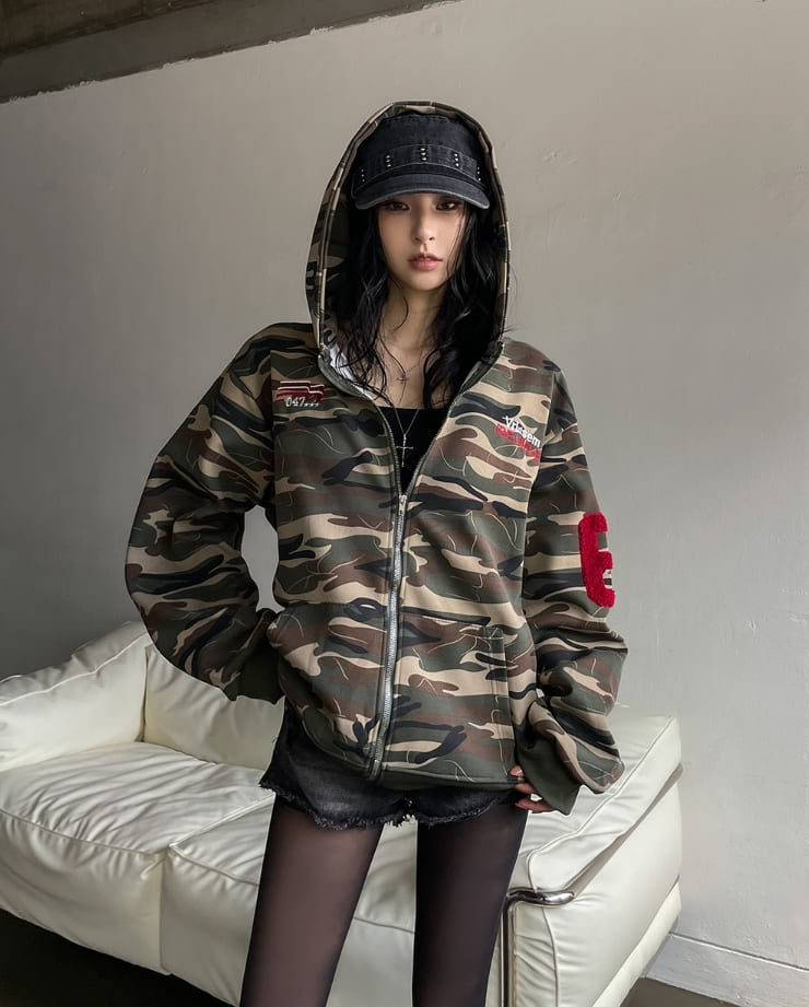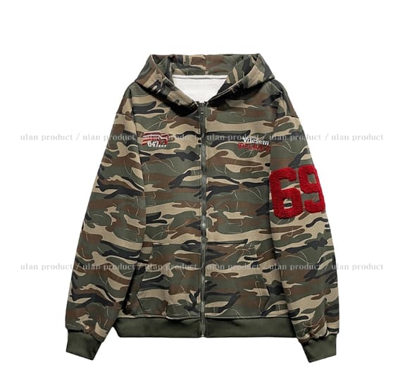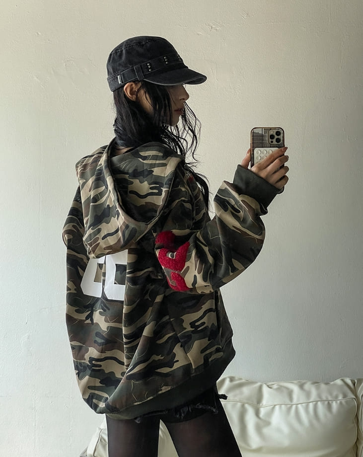 ロホナンバリングパッチオーバーフィットフードジップアップ