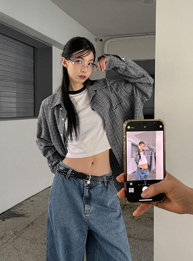 Roin loose fit spring check shirt
