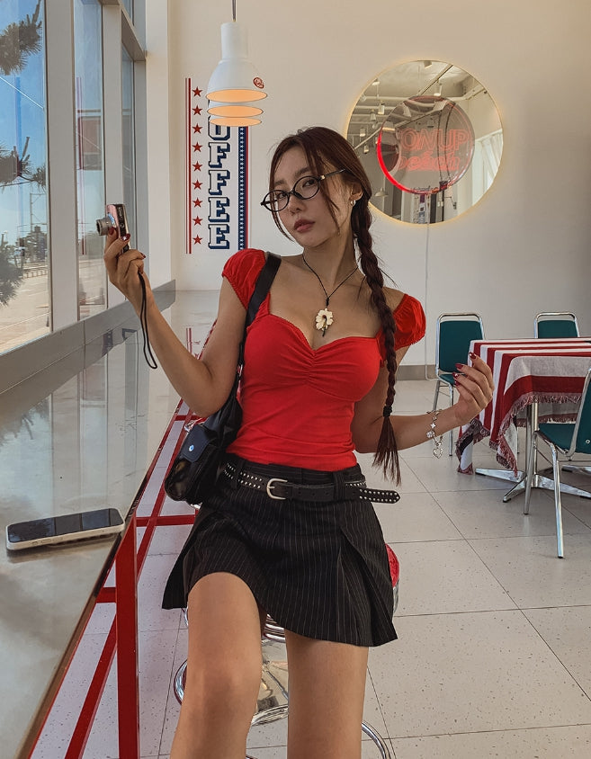 Romi Stripe Pleated Miniskirt