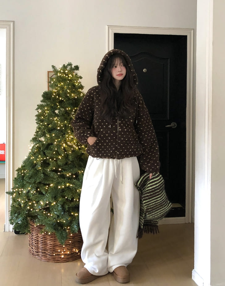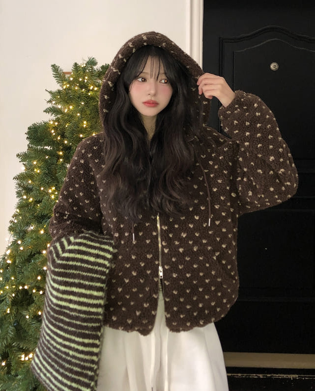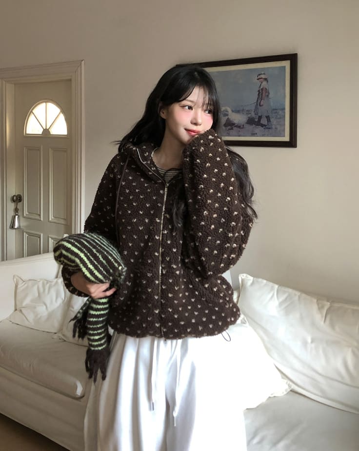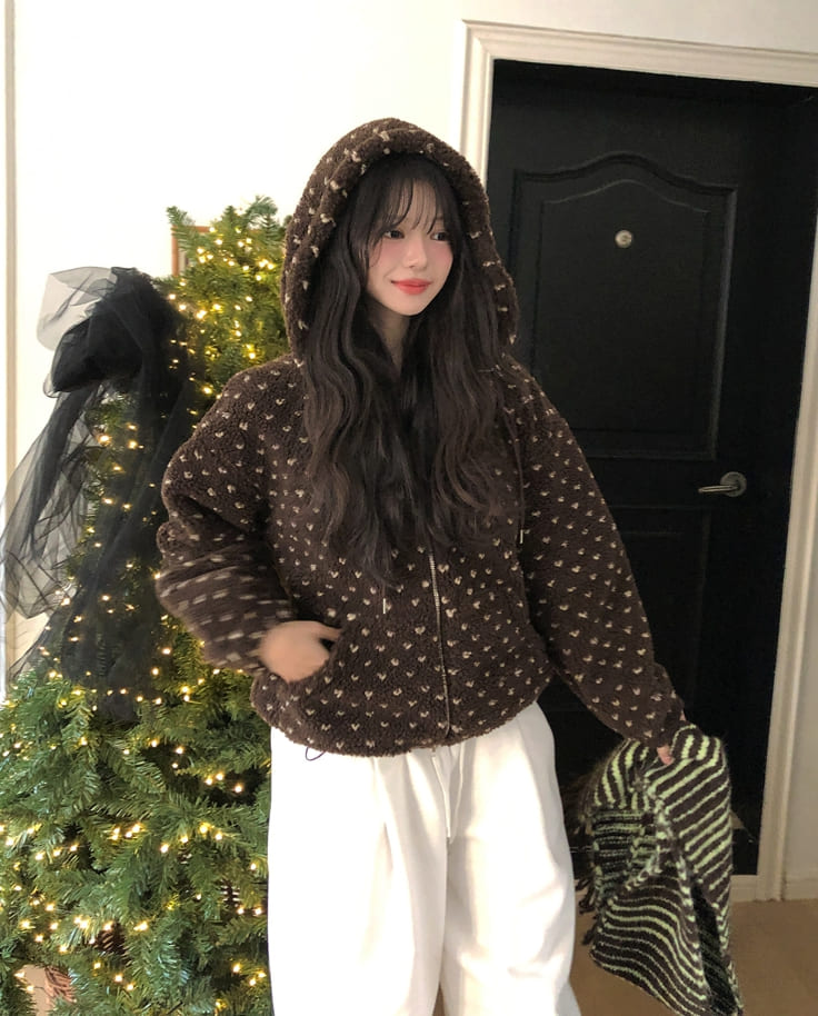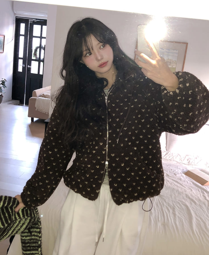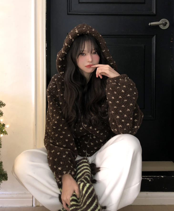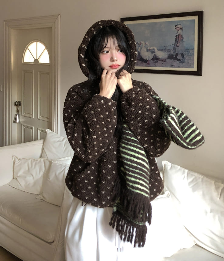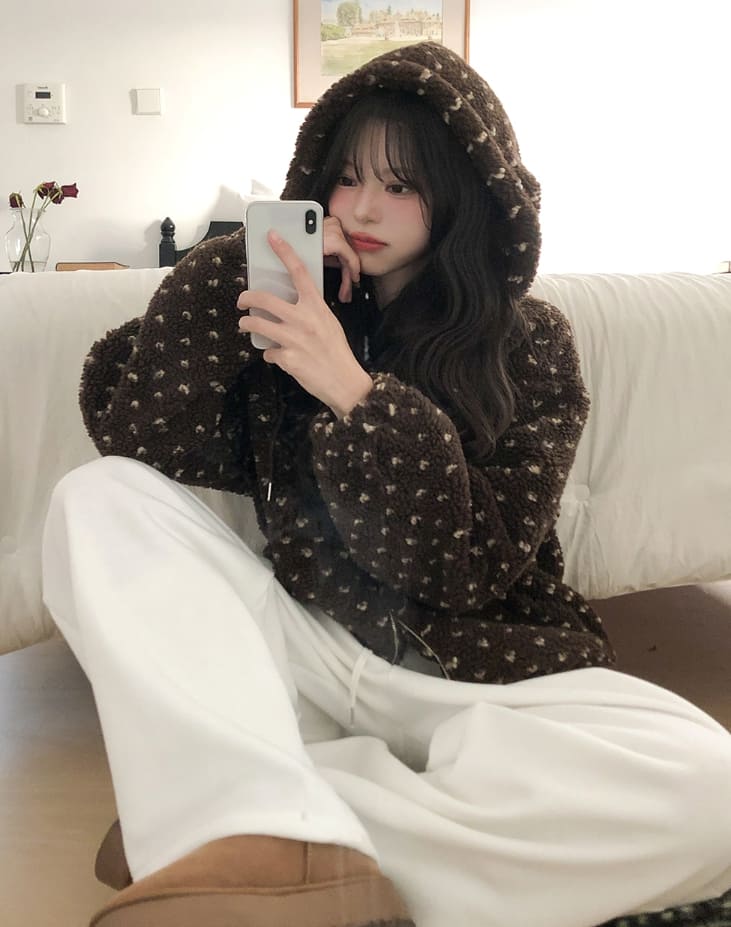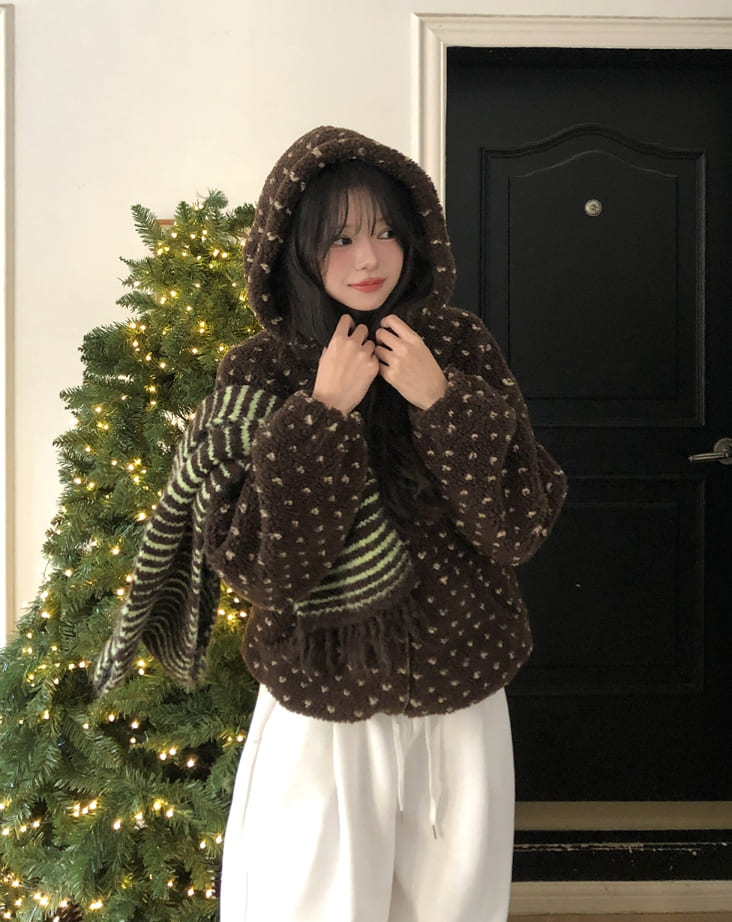 Sage Dot Boucle Hood Zip-Up