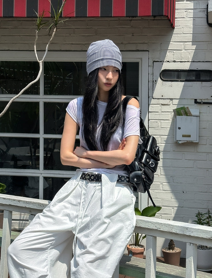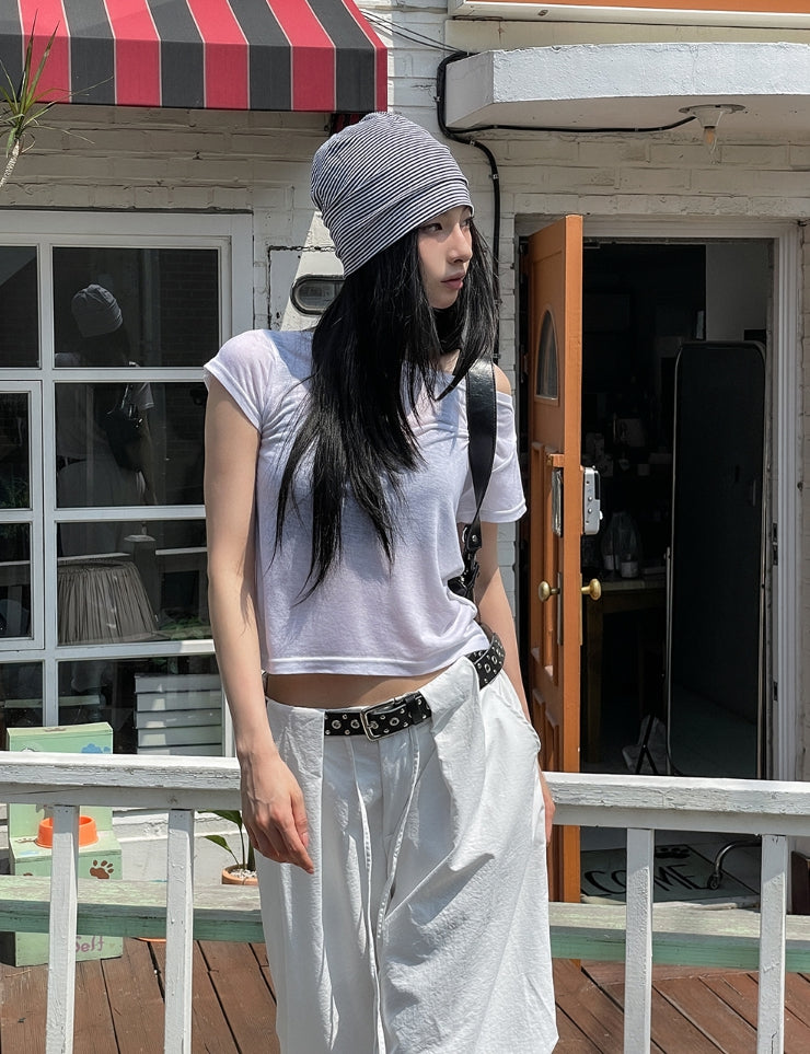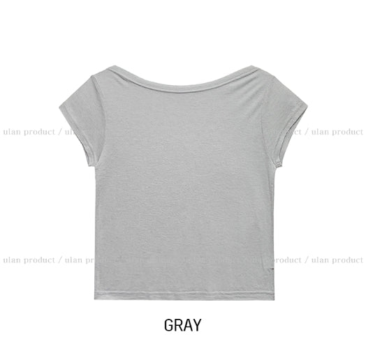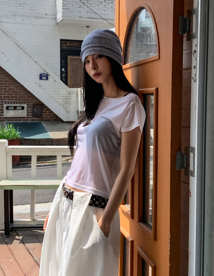 シアーシースルーボートネッククロップ半袖Tシャツ