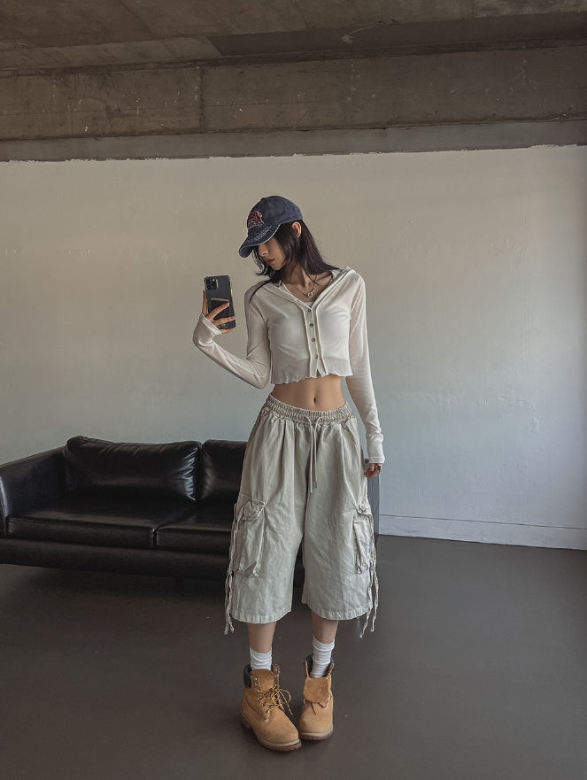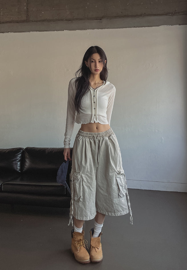 -ONE SIZE (ウエスト(ゴム)102 ヒップ120 股上33 股下34 もも周り76 裾周り68 総丈67)