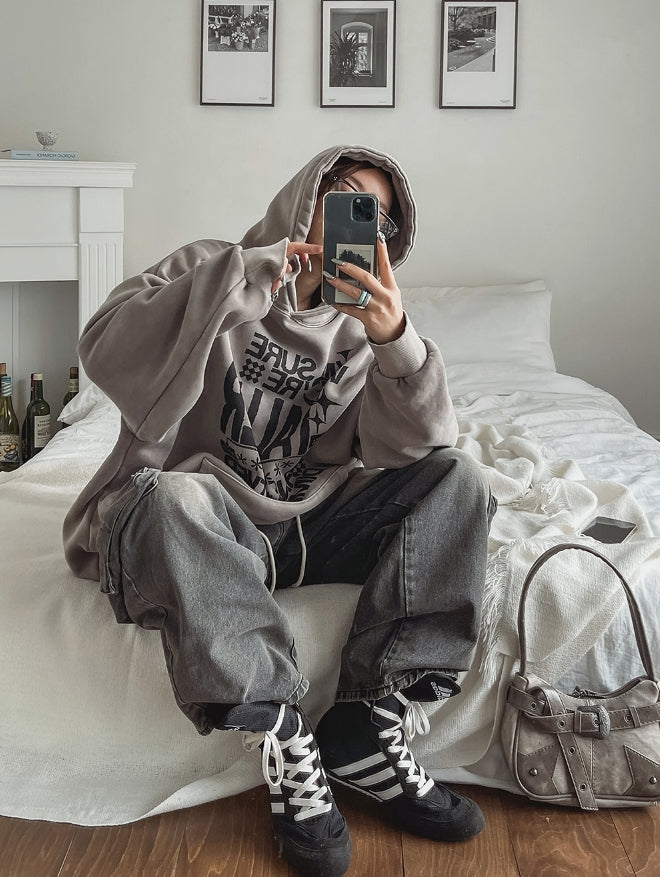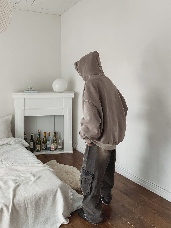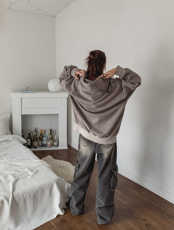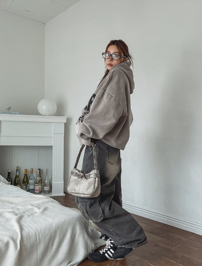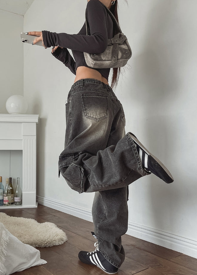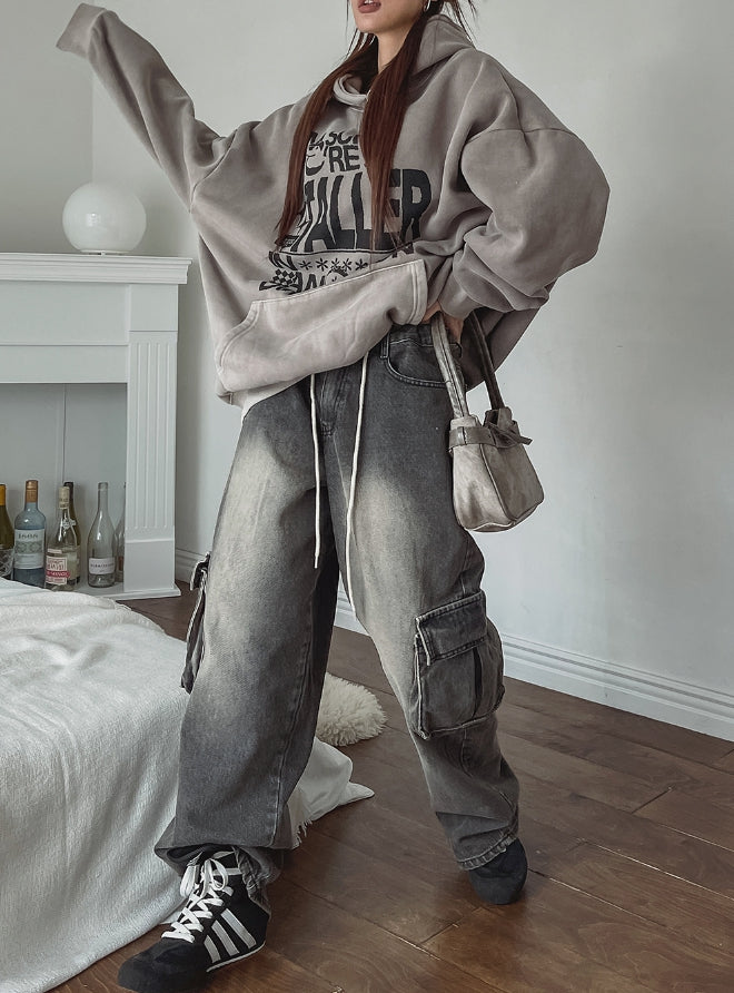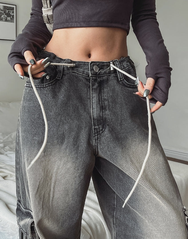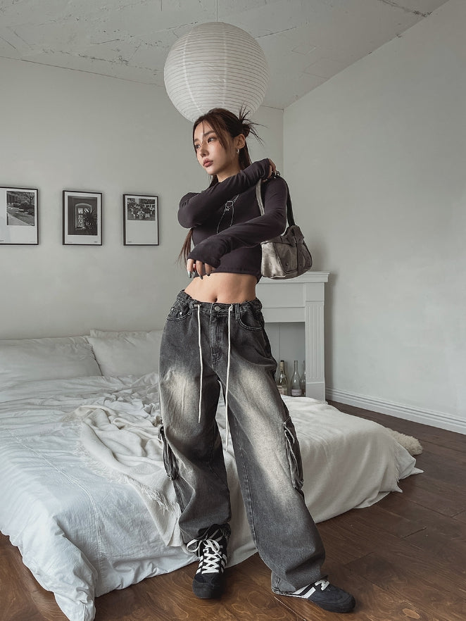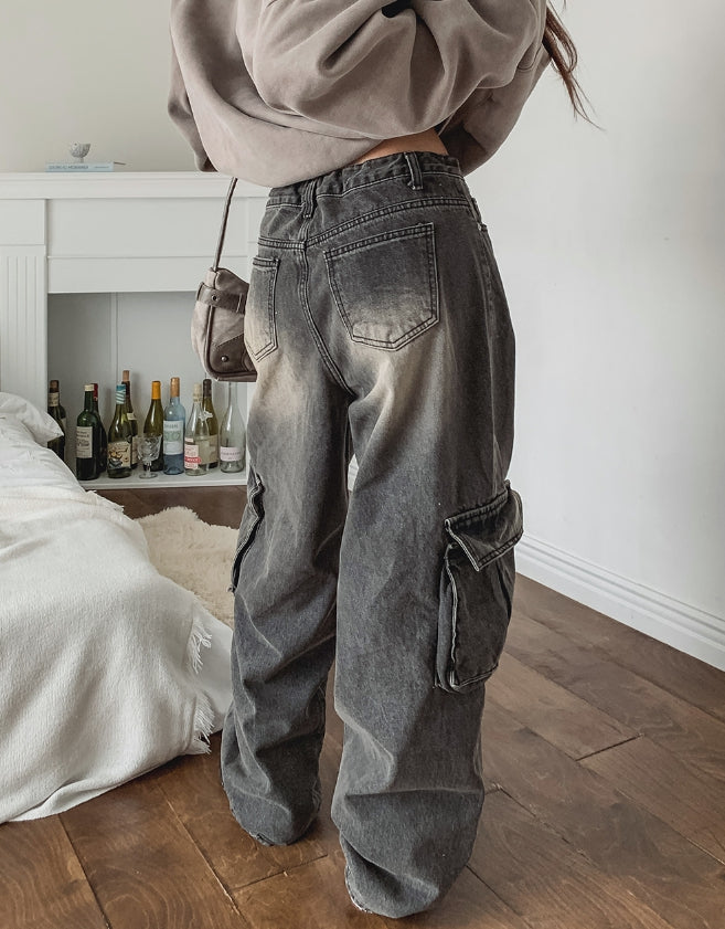 ストッパーウォッシュ加工ワイドカーゴデニムパンツ