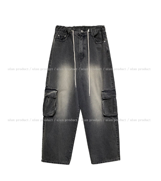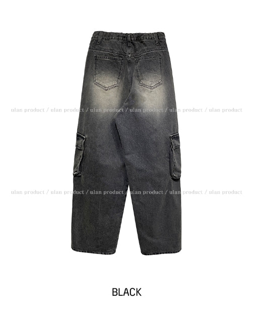 Stopper Washing Wide Cargo Denim Pants