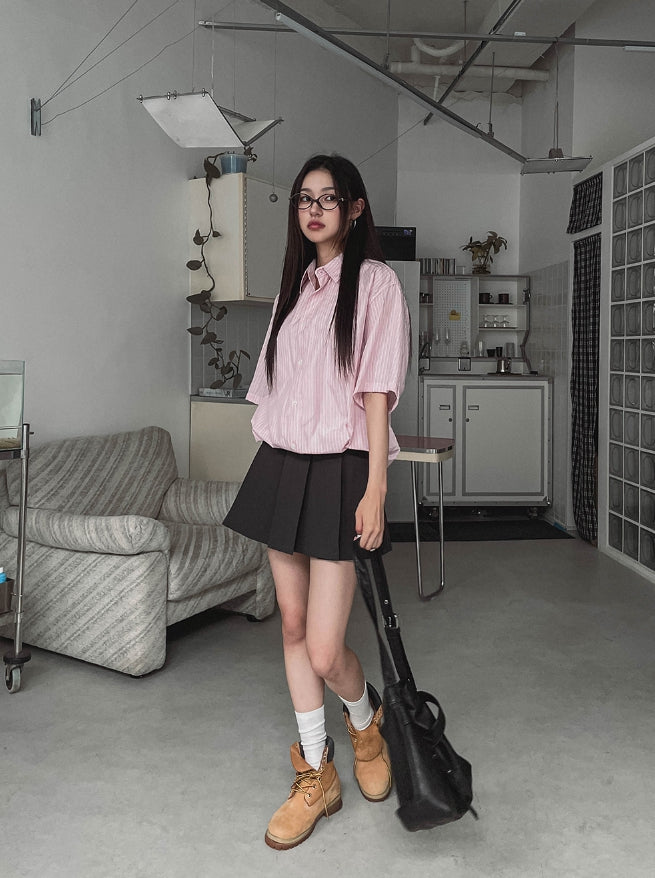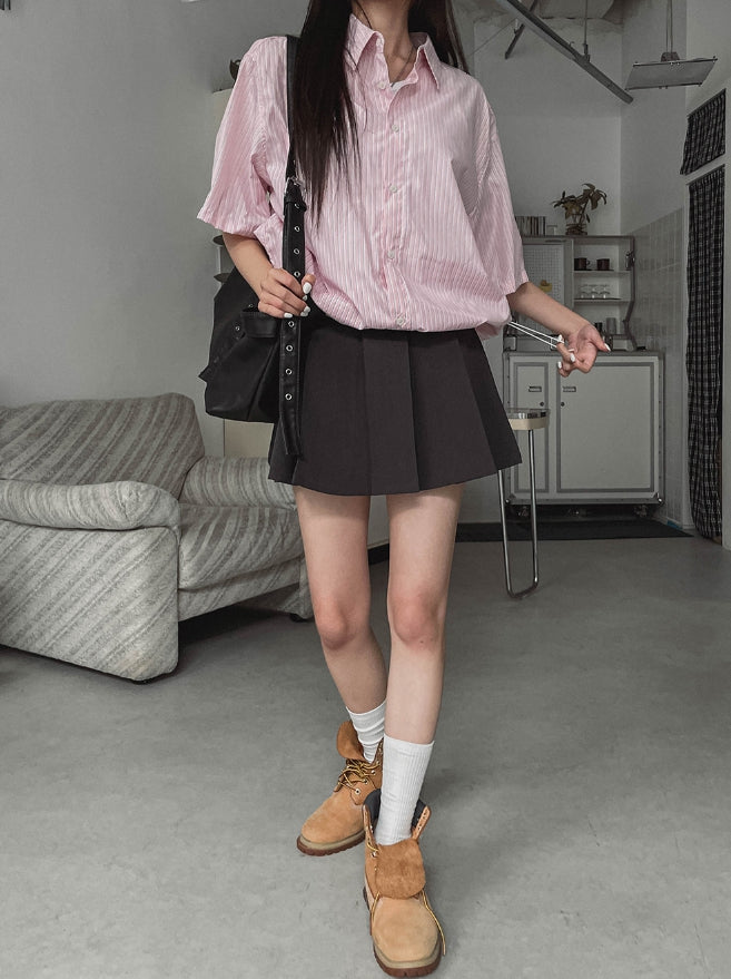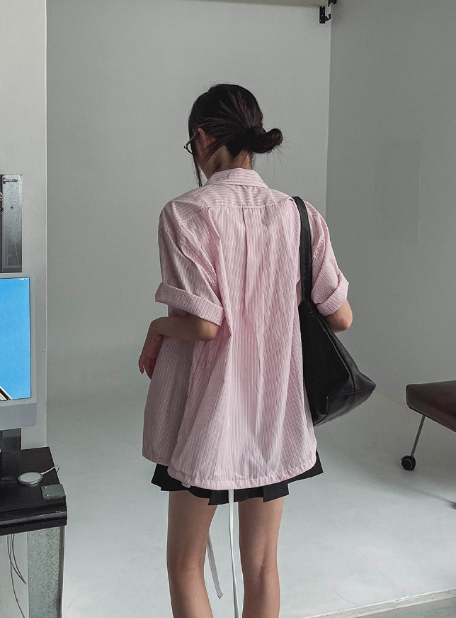 ストリングストライプオーバー半袖シャツ