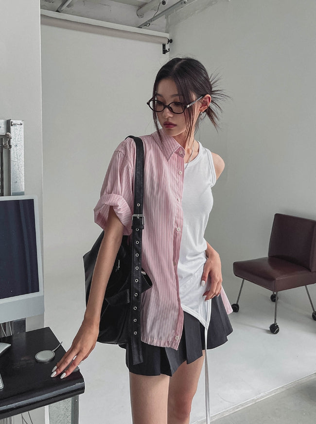 String striped over short-sleeved shirt
