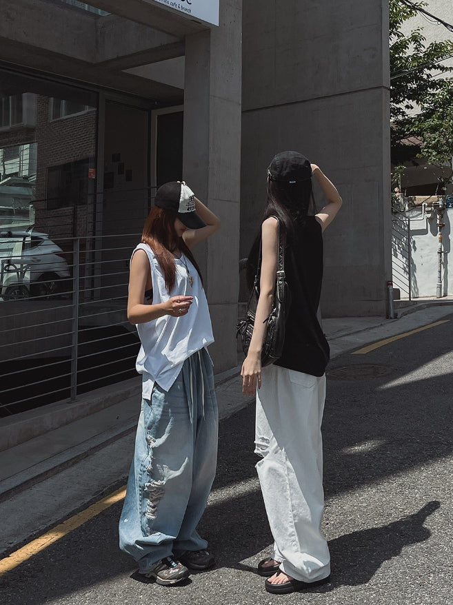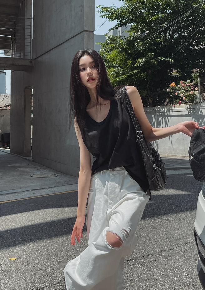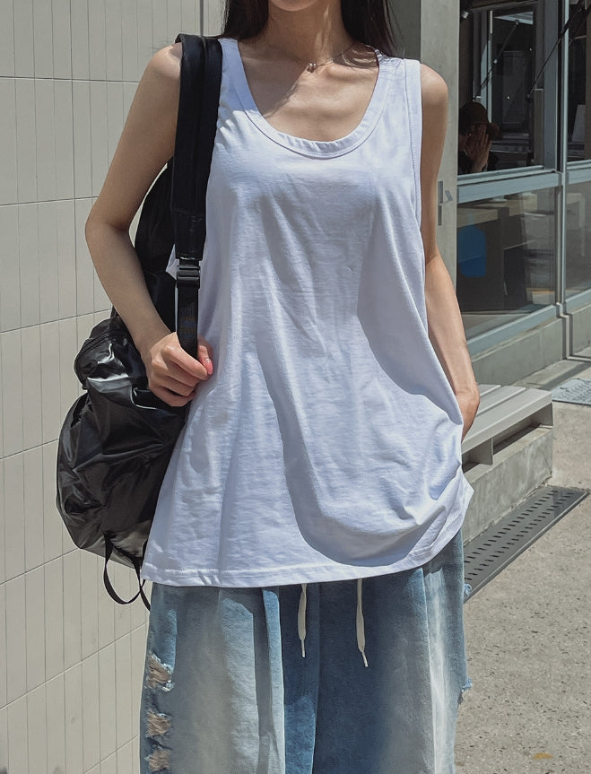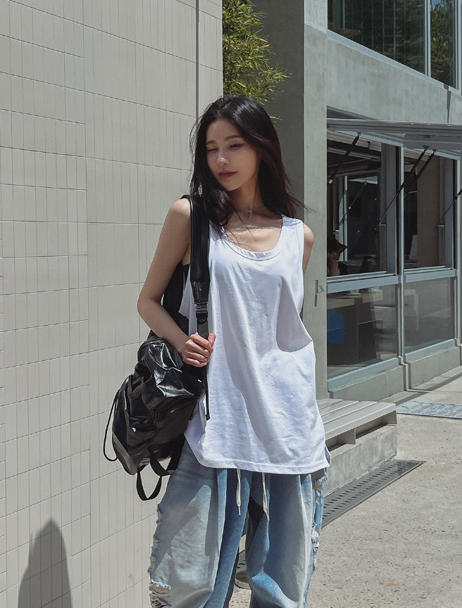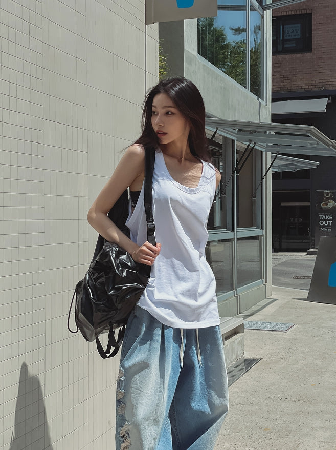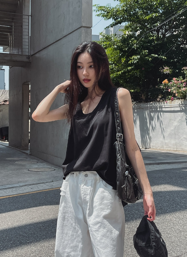 サマーシルクオーバーフィットレイヤードノースリーブ
