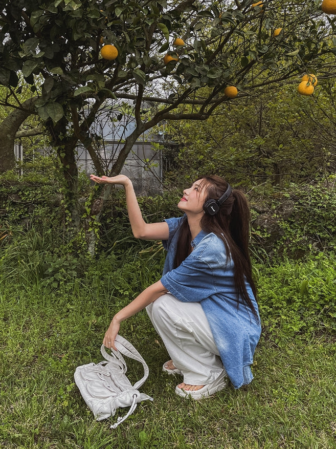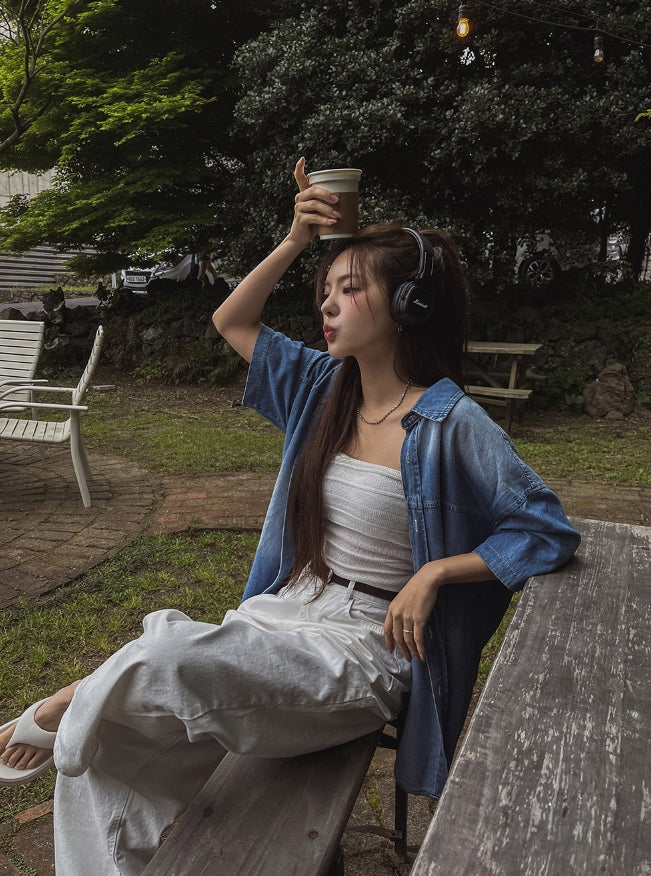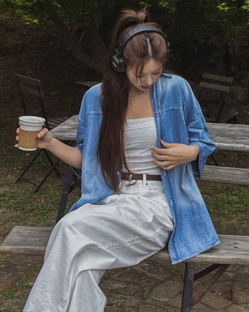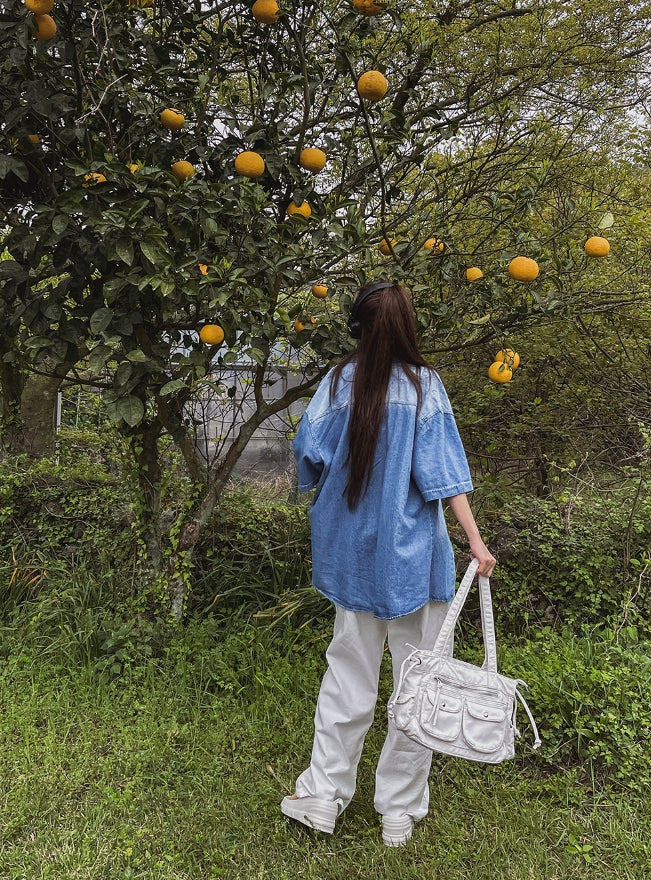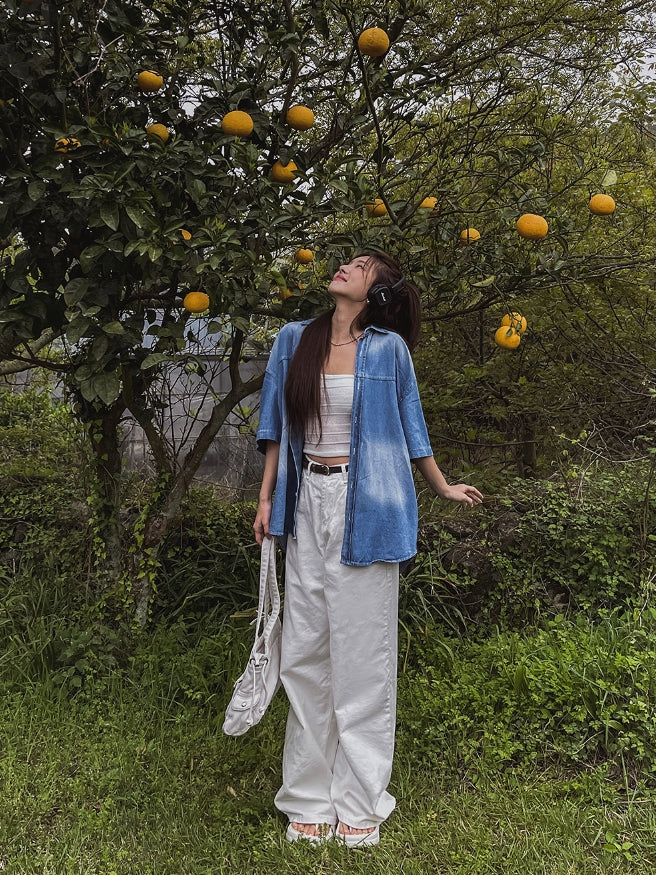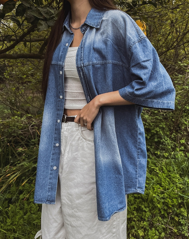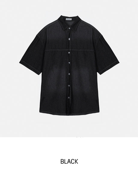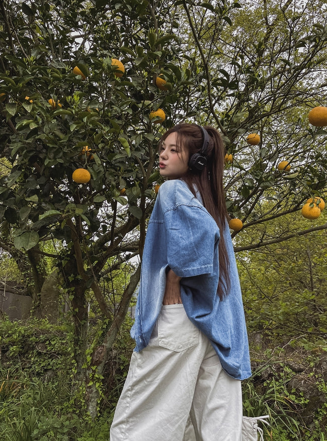 summer washed denim short-sleeved shirt