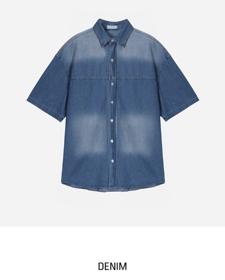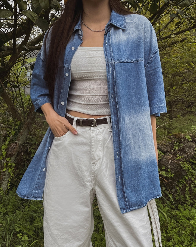 サマーウォッシングデニム半袖シャツ