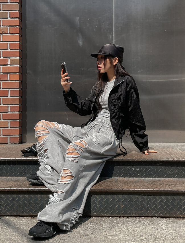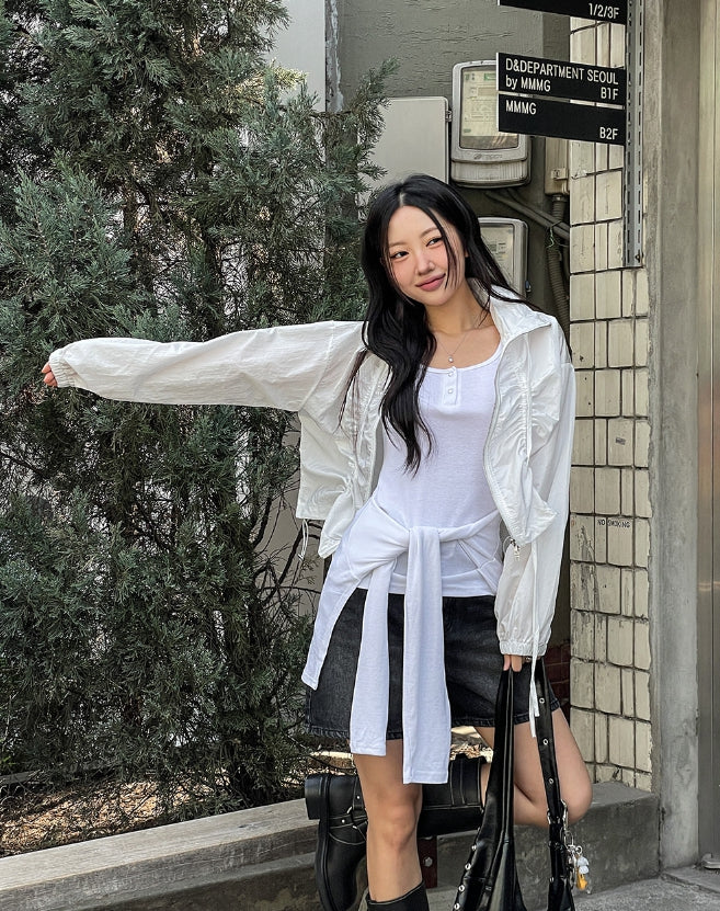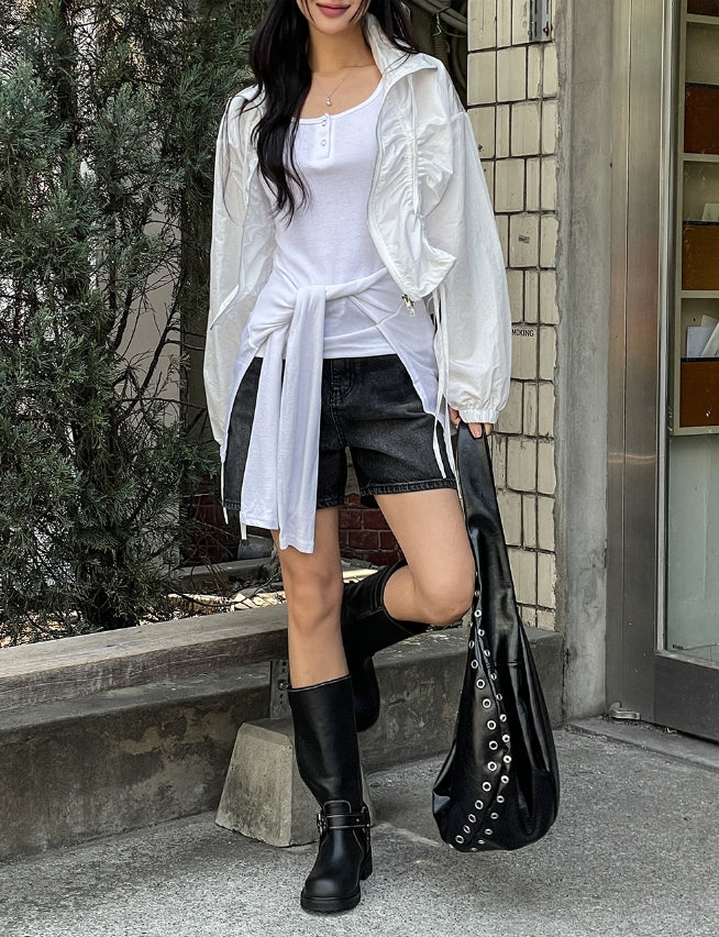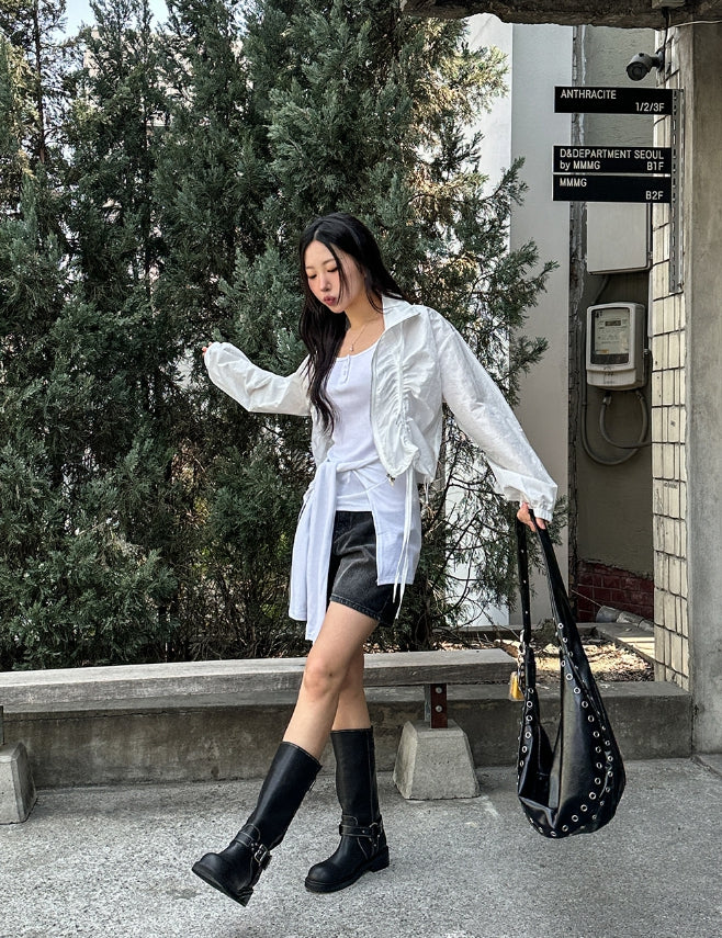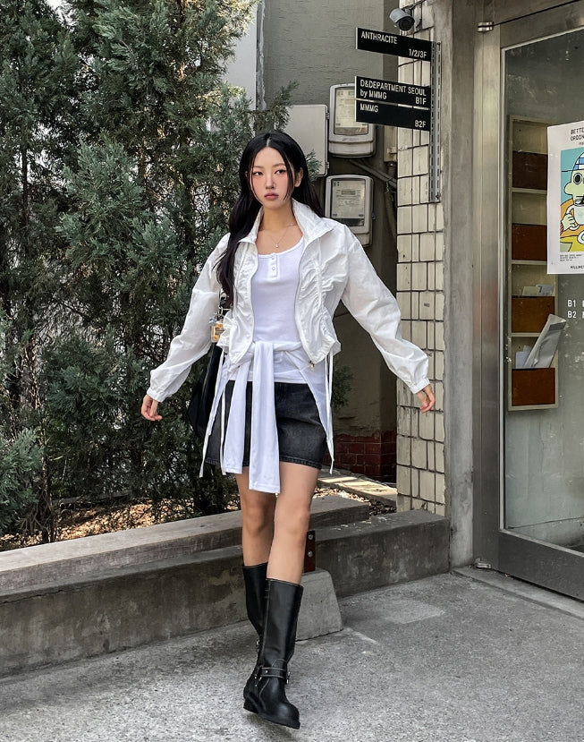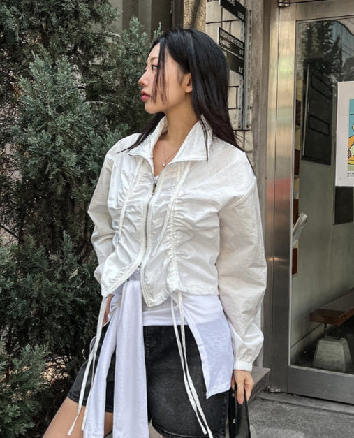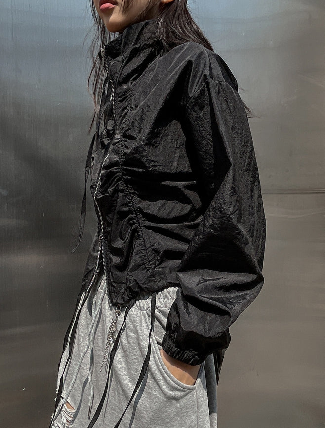 サンライトストラップシャーリングナイロンジップアップジャケット