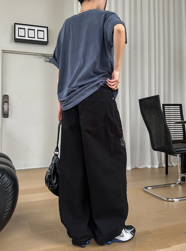 -L (ウエスト76 ヒップ112 股上40 股下70 もも周り78 裾周り56 総丈110)
