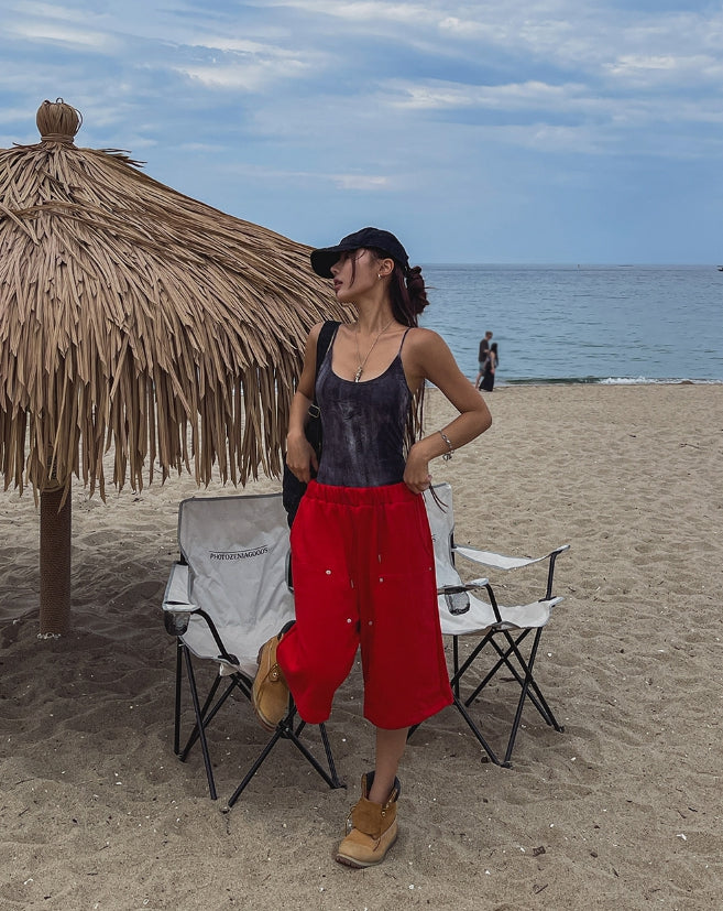 -ONE SIZE (ウエスト(ゴム)60 ヒップ110 股上35 股下23 もも周り66 裾周り66 総丈58)