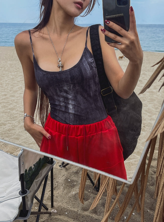 -163cm, top 44size , bottom 26(S), Red, Gray