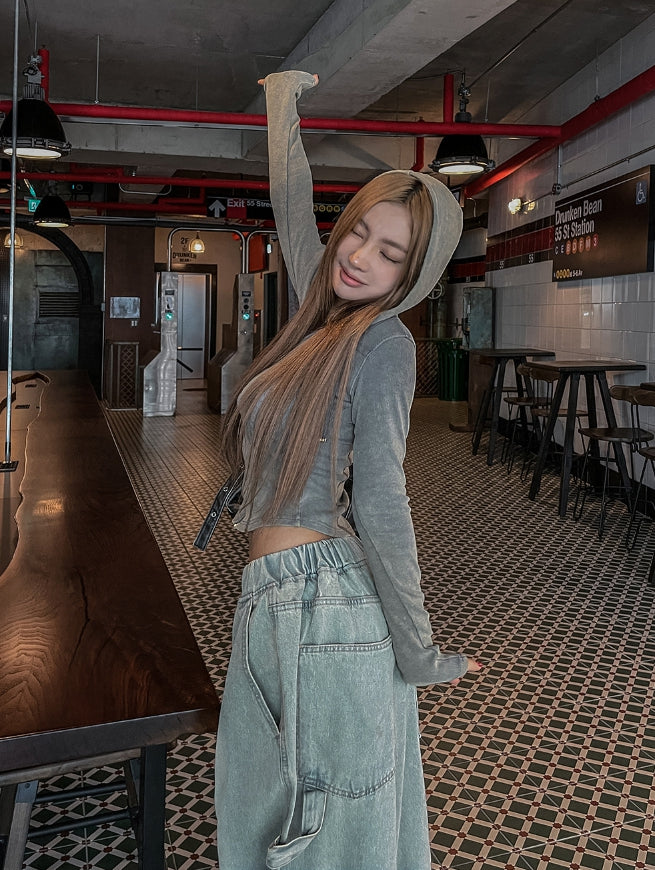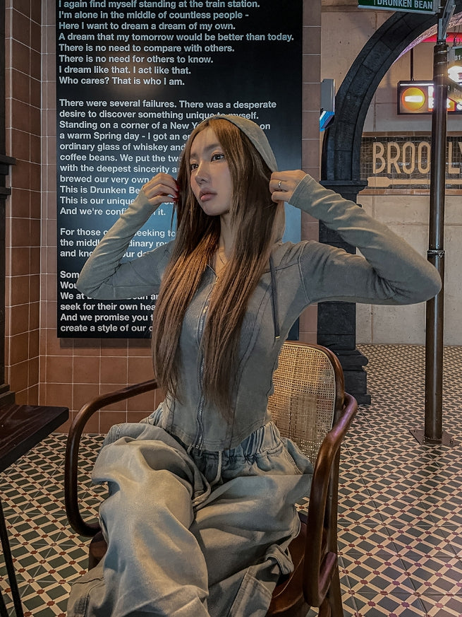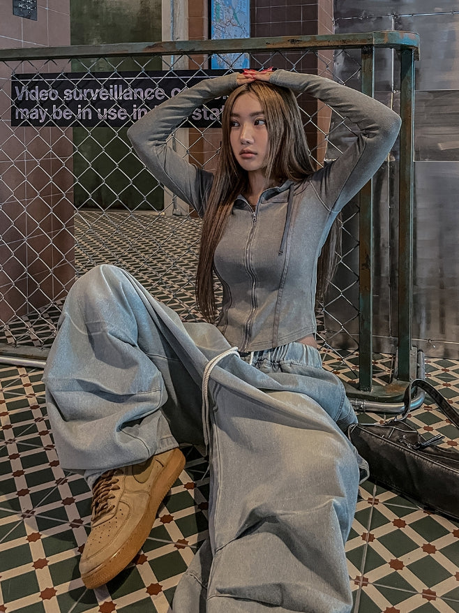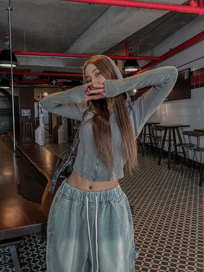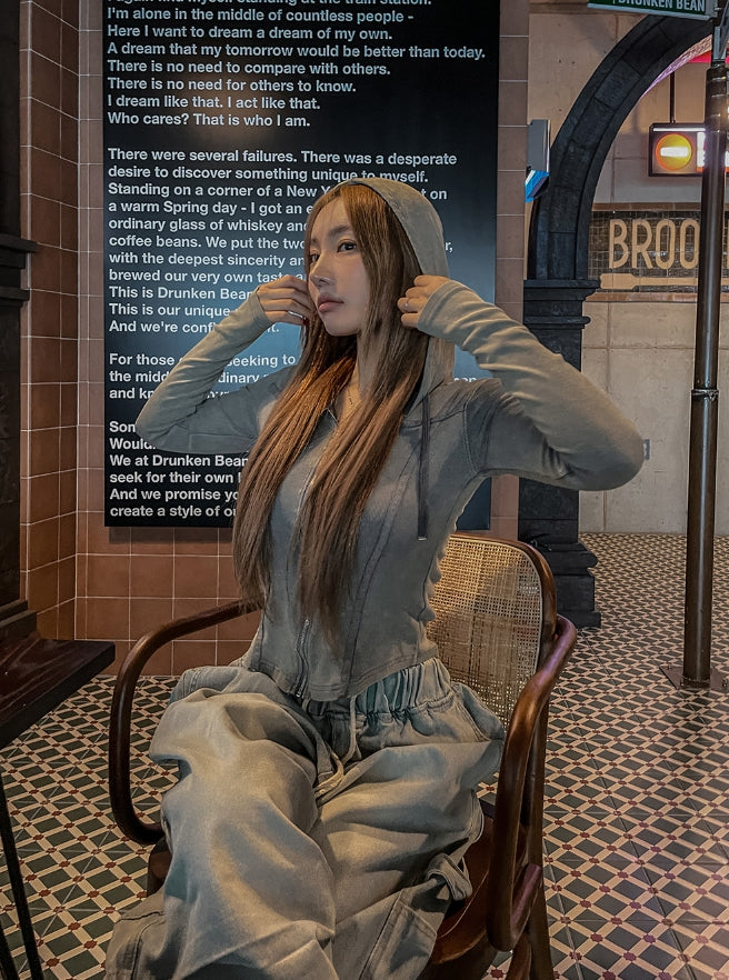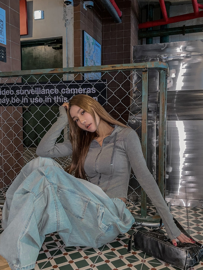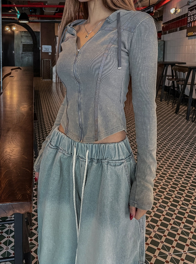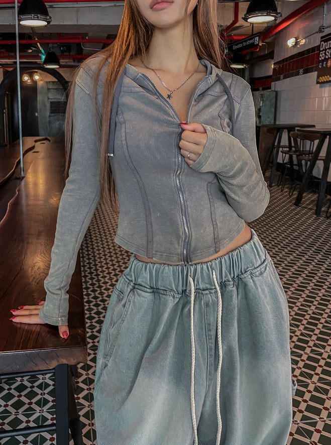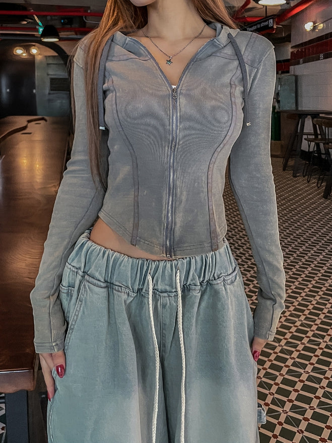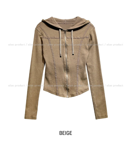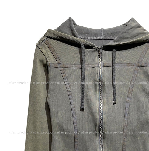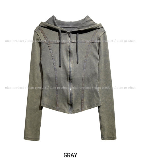 Texture Line Dyeing Ribbed Hood Zip-Up
