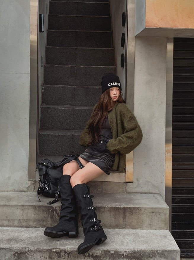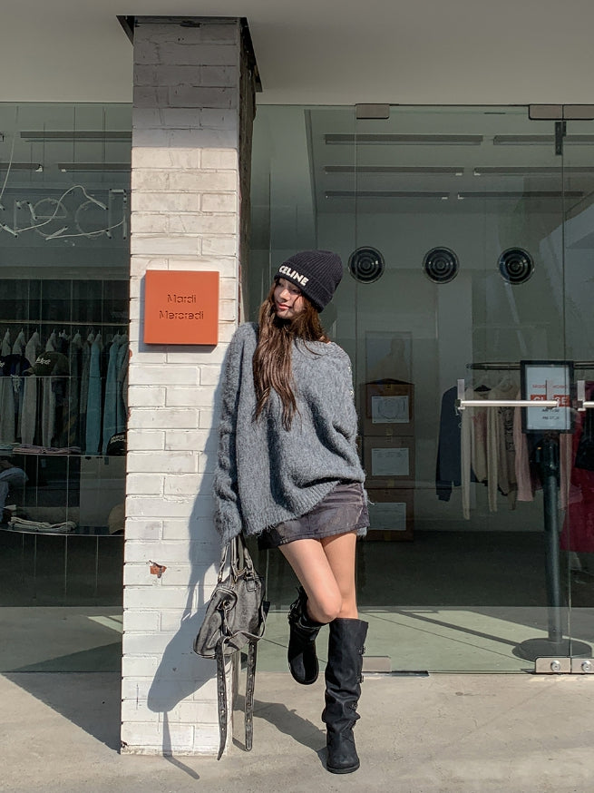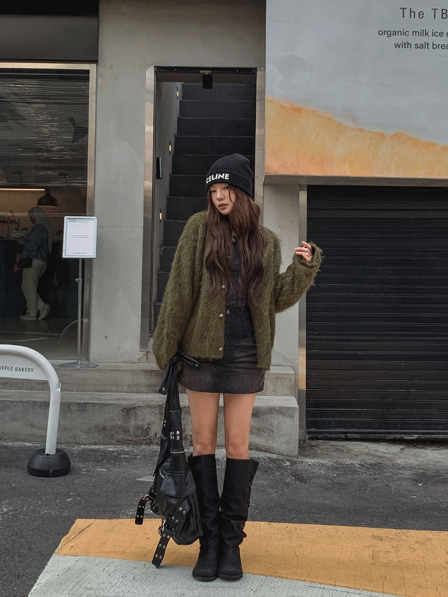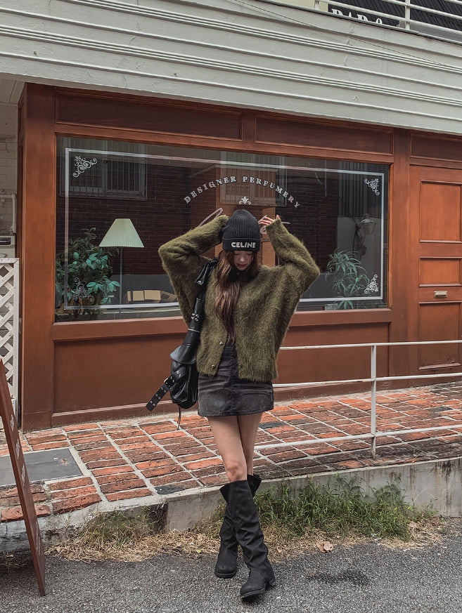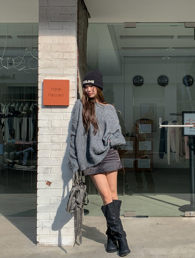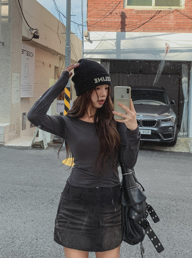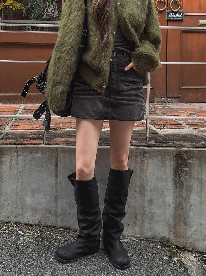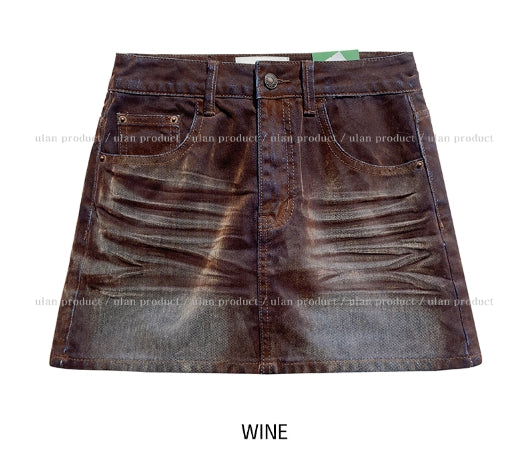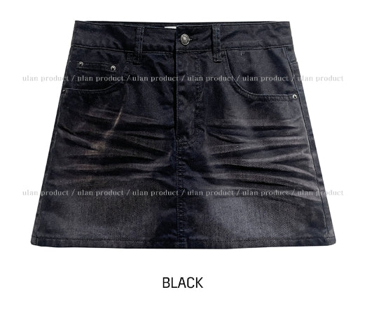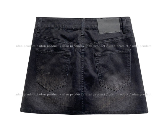 トレイベルベットウォッシュ加工デニムキュロットスカート