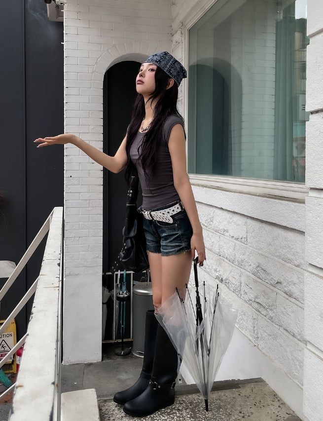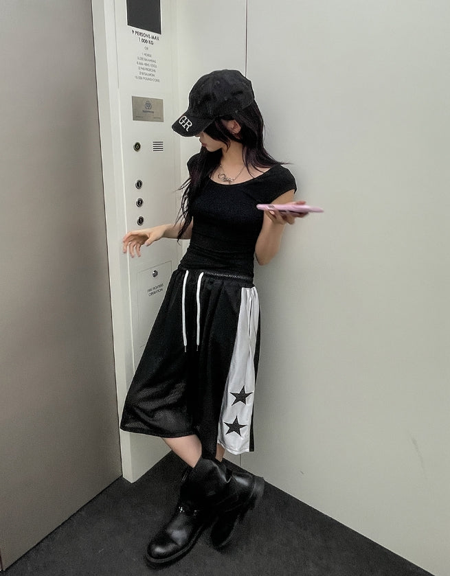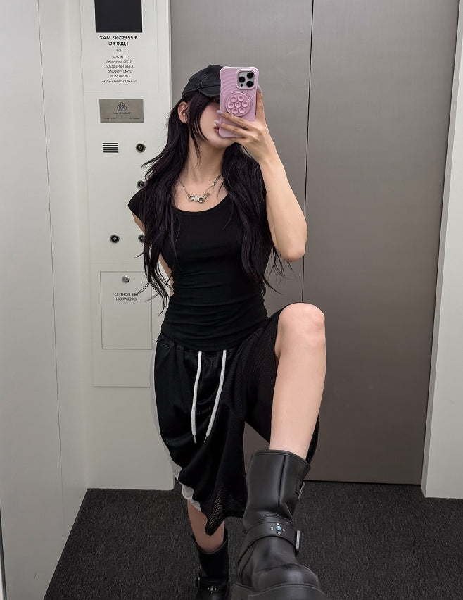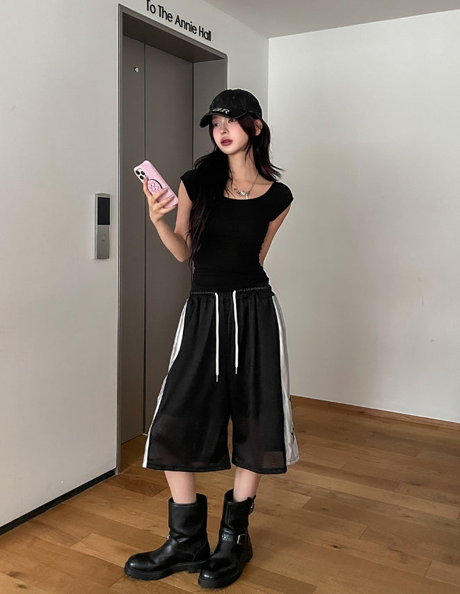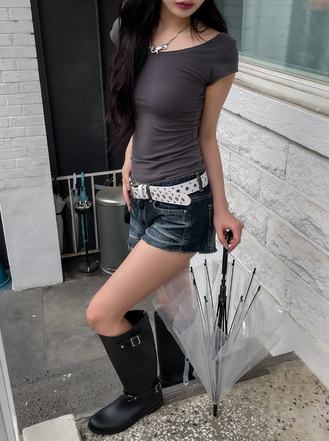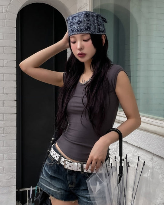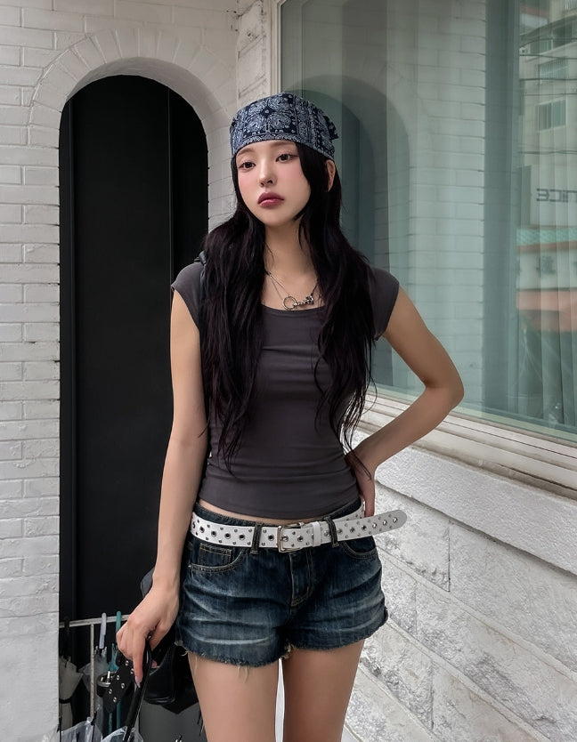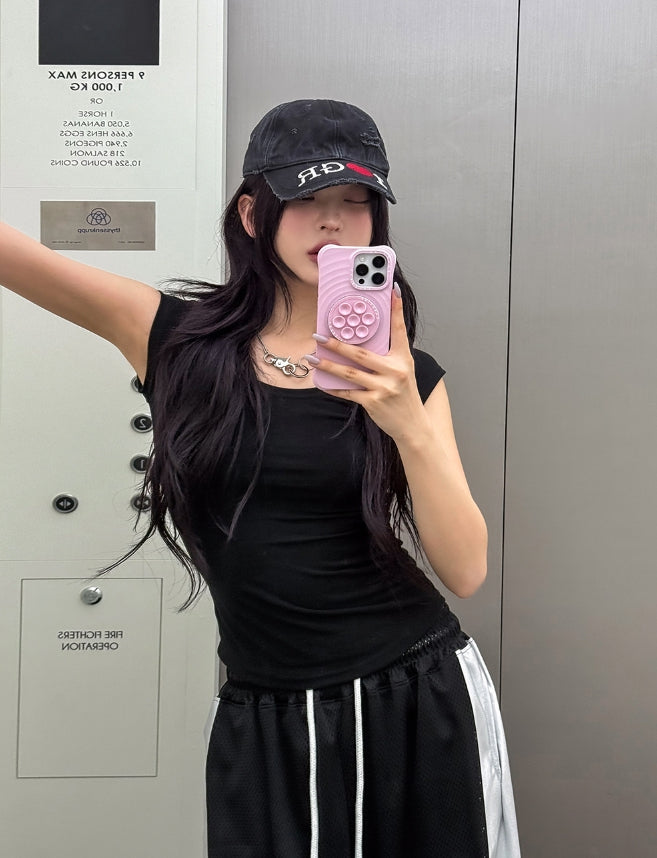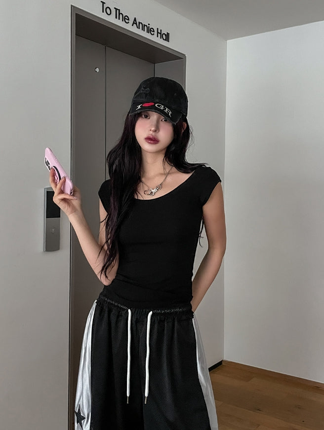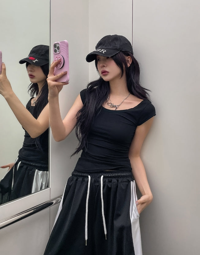 [U-BASIC/1+1] Roundy Slim U-neck Cap Sleeve Short Sleeve