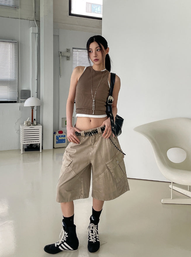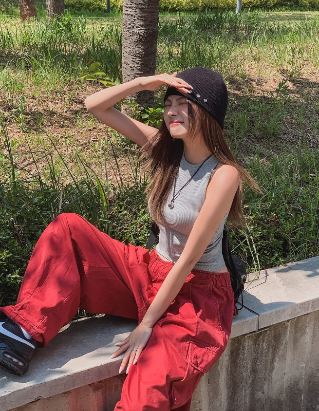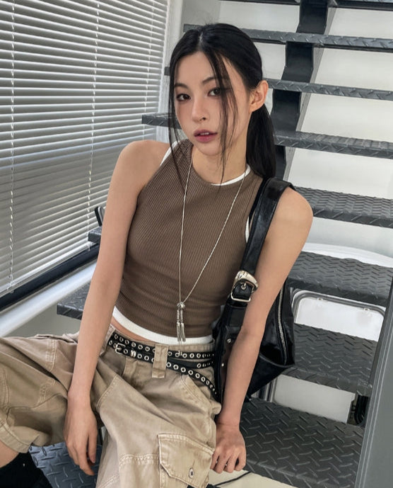 [U-BASIC] Basic Baldy Ribbed Crop Mango Sleeveless