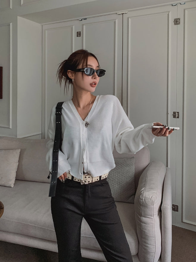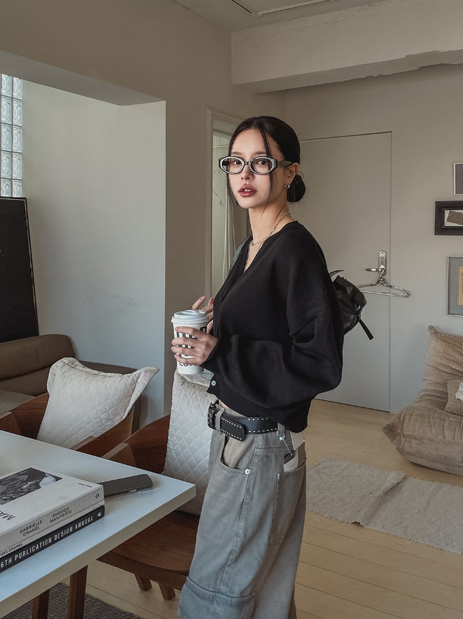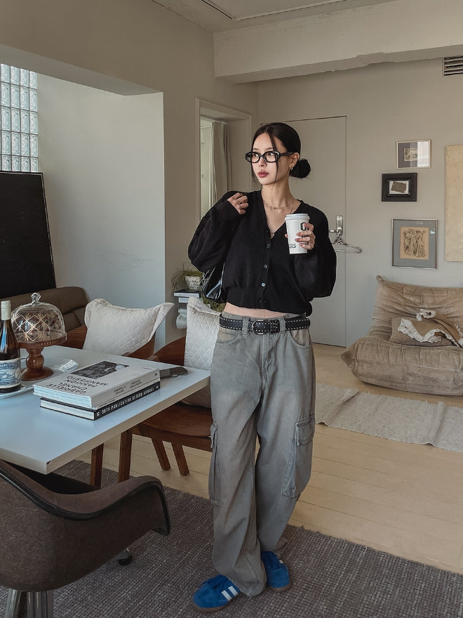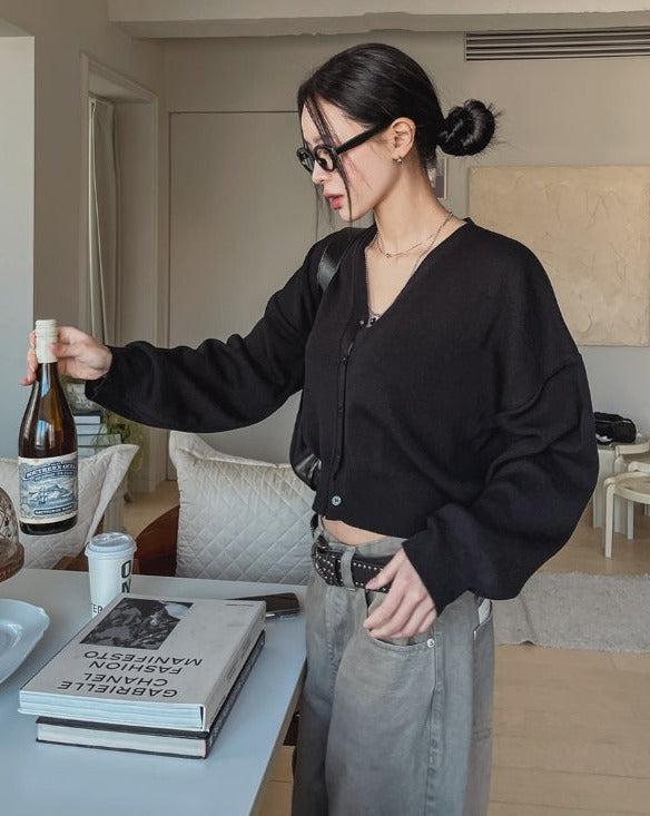 [U-BASIC] Basic Balloon Cropped Cardigan