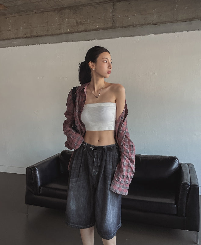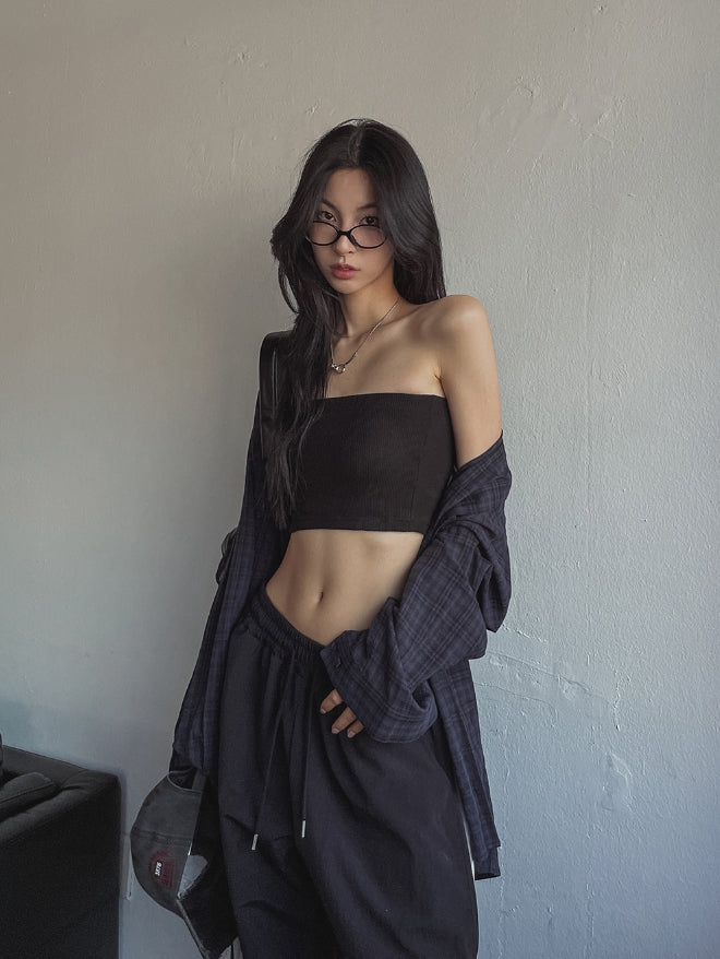 [U-BASIC]ベーシックリブチューブトップ(カップ付き)